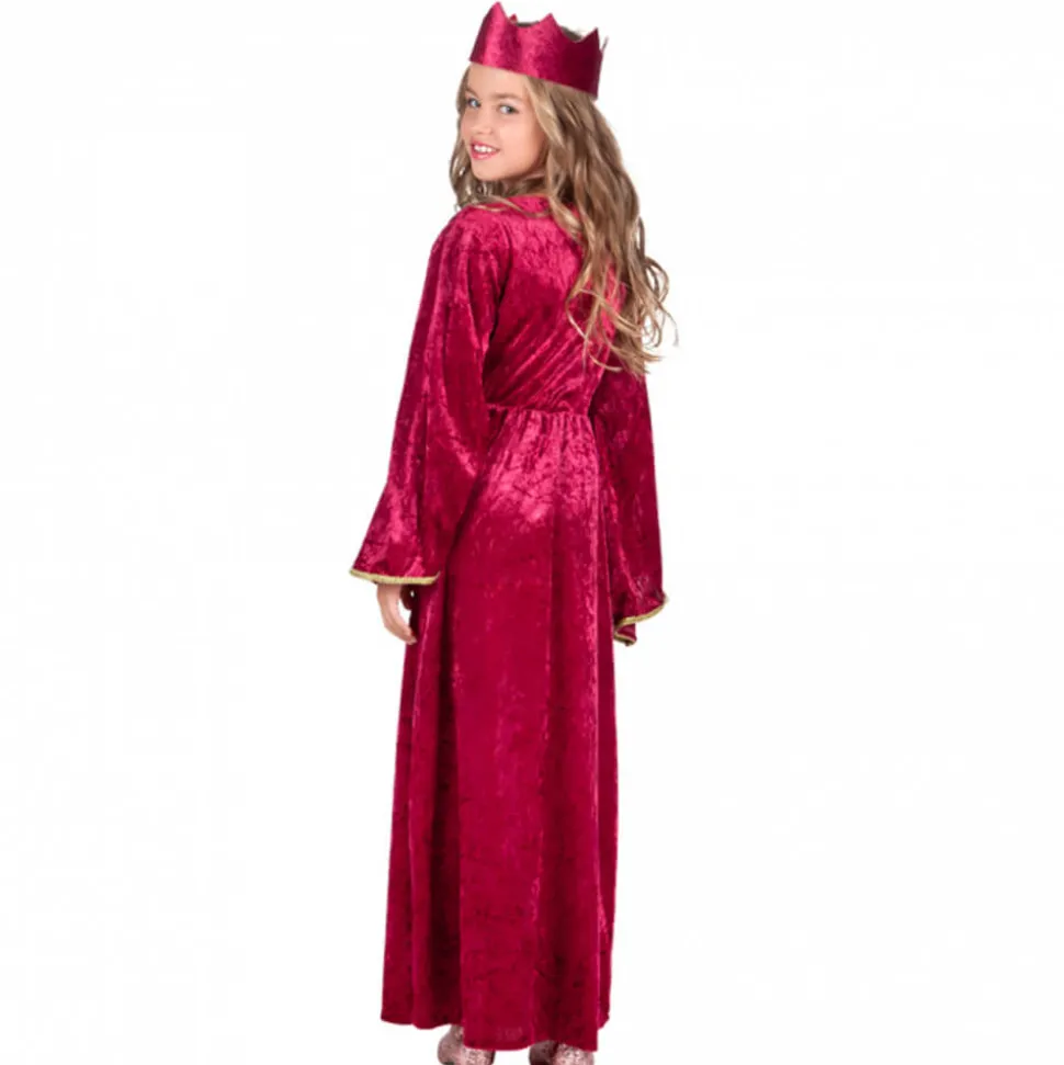 La couronne en tissu effet velours rouge parfaitement assortie à l’ensemble viendra compléter ce costume de reine médiévale.