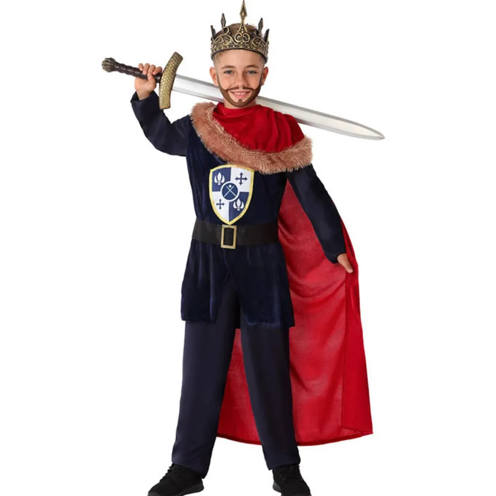 Ce déguisement de roi médiéval en taille enfant se compose d’un tee-shirt, d’une cape, d’un pantalon et d’une ceinture.