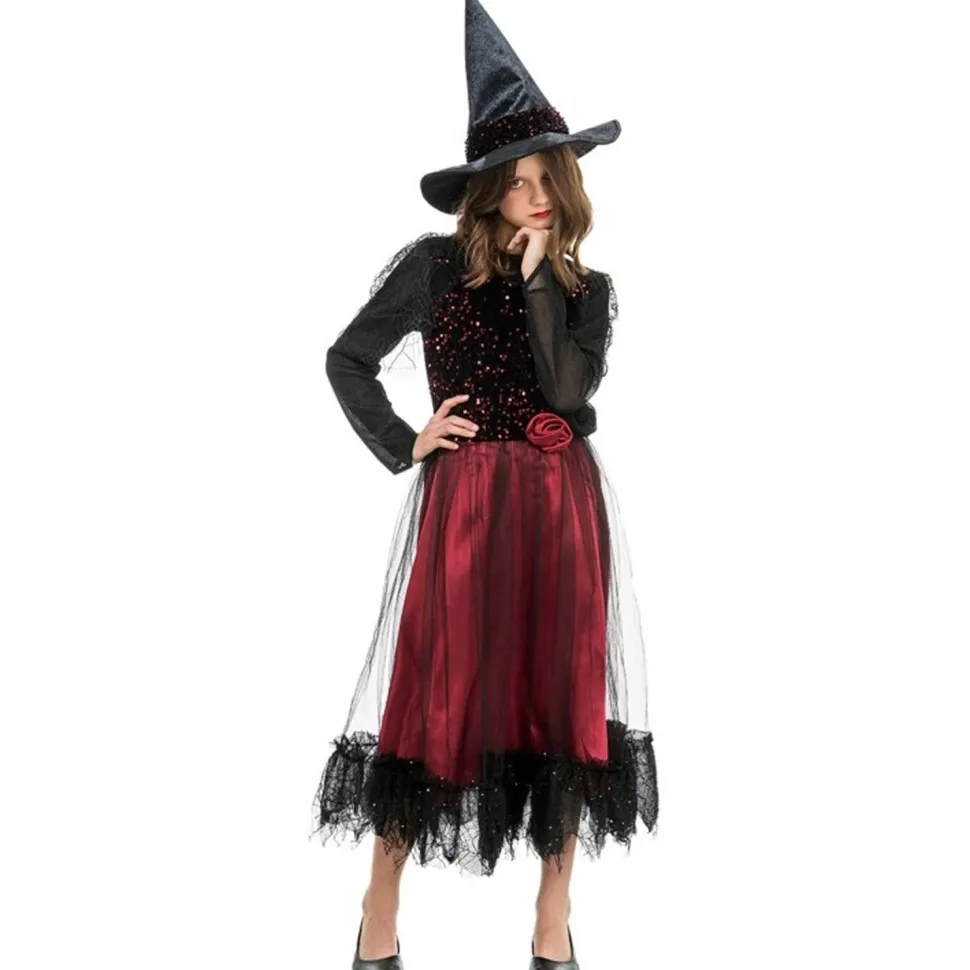 Description du produit : Déguisement Sorcière Lucinda Bordeaux à sequins – enfant