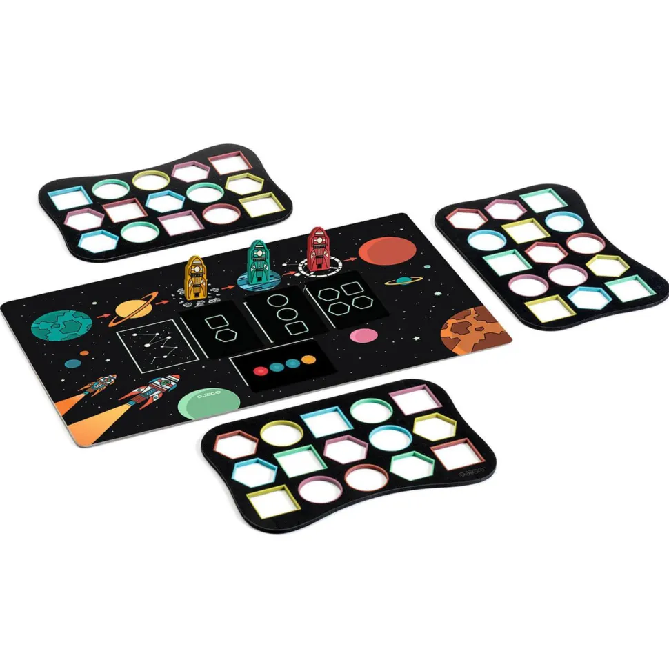 Contenu : 1 plateau, 4 pions fusée, 4 pads de pilotage, 32 cartes » mission », 33 cartes « contrainte ».