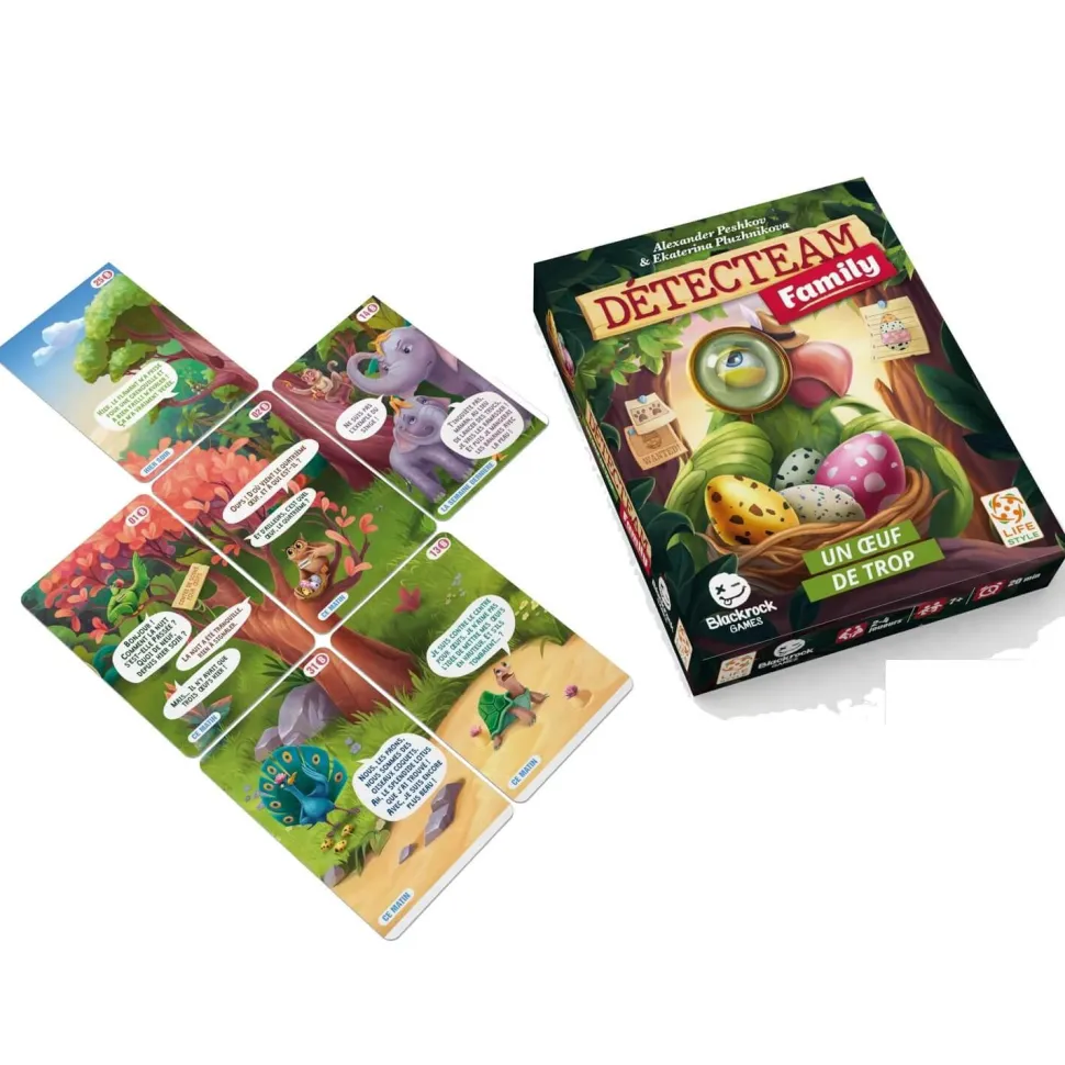Enquêtez sur Un œuf en trop, de la gamme Detecteam Family, de la marque Blackrock, et reconstituez le puzzle de cartes.