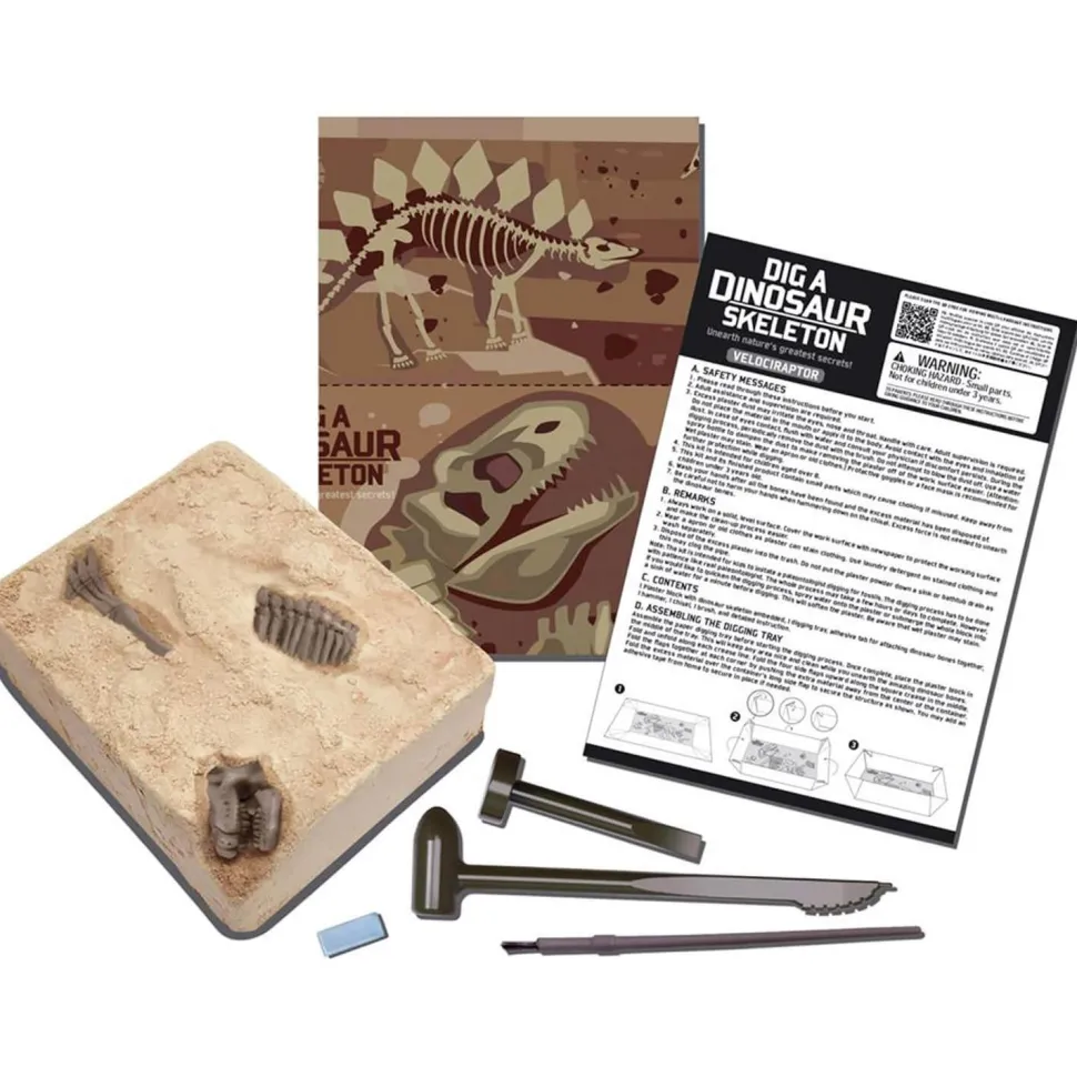 Un kit de la collection KidsLabs « Excavation d’un squelette de dinosaure » pour les paléontologues en herbe !Devenez un expert en paléontologie en retrouvant les os d’un dinosaure qui a écumé la Terre il y a des millions d’années. Assemblez ensuite les pièces pour recréer l’étonnant squelette du rapide vélociraptor, un prédateur meurtrier qui courait sur deux pattes.Une fois assemblé, la maquette du dinosaure mesure 21 cm de haut, exposez-la fièrement dans votre chambre !Cet ensemble comprend un bloc de plâtre enfermant un squelette de vélociraptor, des outils spéciaux pour la fouille (brousse, outil de fouille), et de la cire molle pour positionner les articulations.Dimensions de la boîte : 21,5 x 17 x 5.7 cm environ.