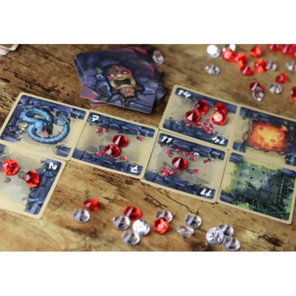 Principe du jeu : Explorez la grotte de Tacora d’un pas prudent, sous la seule lumière de vos torches. À chacune de vos avancées, découvrez un nouveau couloir et ramassez les diamants trouvés sur votre chemin. Décidez ensuite si vous voulez rentrer au campement pour mettre en sécurité tous vos trésors dans votre coffre, ou si vous préférez continuer votre expédition vers les profondeurs de la grotte à vos risques et périls ! Car si vous tombez dans un piège, vous vous précipiterez vers la sortie en laissant derrière vous toutes vos trouvailles, et rentrerez au campement les mains vides et les jambes tremblantes !