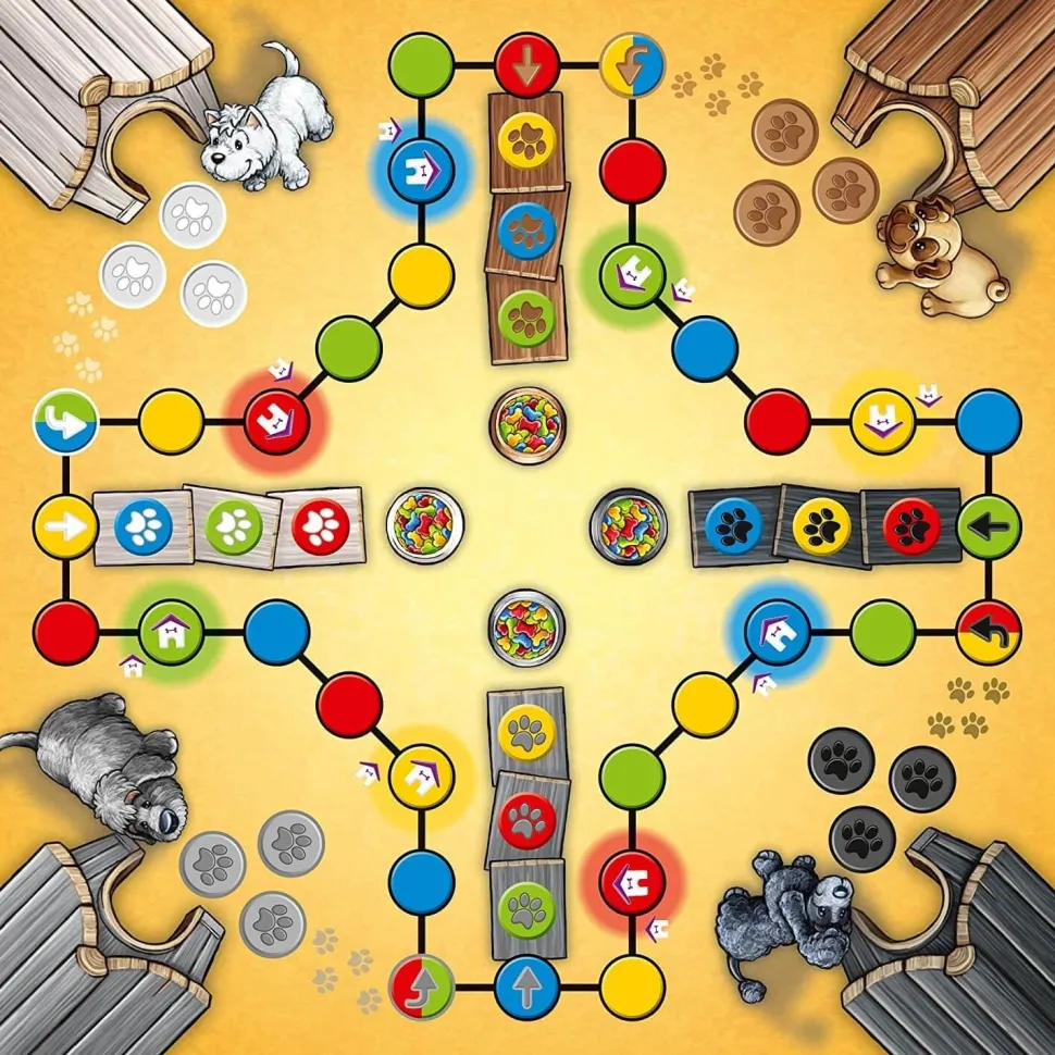 Désormais, cette version KIDS est idéale pour les enfants à partir de 5 ans, les petits chiens amusants et les règles de jeu simples, font la joie des tous petits mais aussi le bonheur de tous les amateurs de DOG® ! Les règles du jeu sont simples, il s’agit de guider ses trois chiens, sains et saufs, jusqu’à l‘arrivée, en les déplaçant cependant à l’aide de cartes, ce qui peut réserver quelques surprises. Que l’on y joue seul ou en équipe, la vigilance est de rigueur, car même les chiots sont capables de mordre !