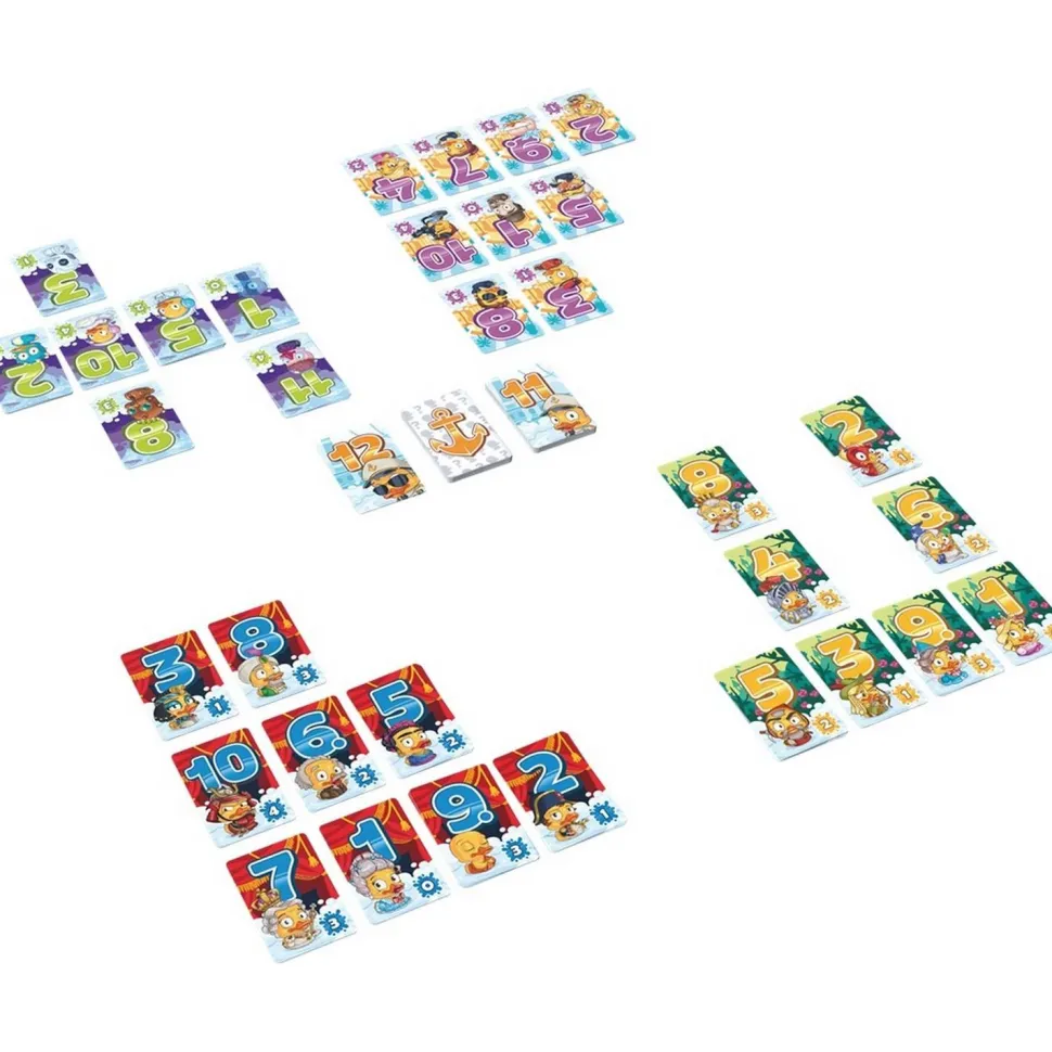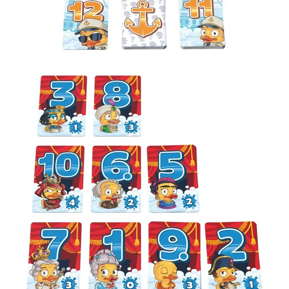 Chaque joueur reçoit une série de 12 cartes canard, portant un chiffre de 1 à 12, les mélange et les place devant lui, aléatoirement en une grille de 4 cartes sur 3.