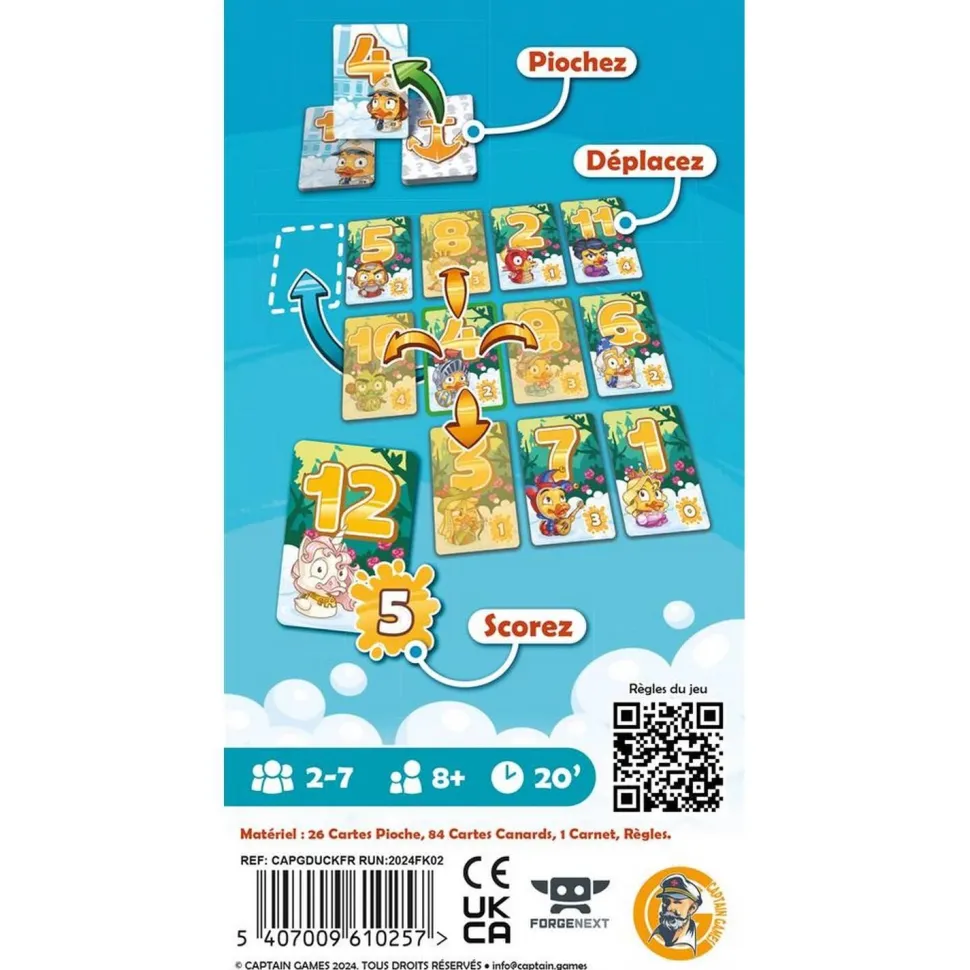 Contenu :26 cartes Pioche, 84 cartes Canard,1 bloc de feuilles de score, les règles