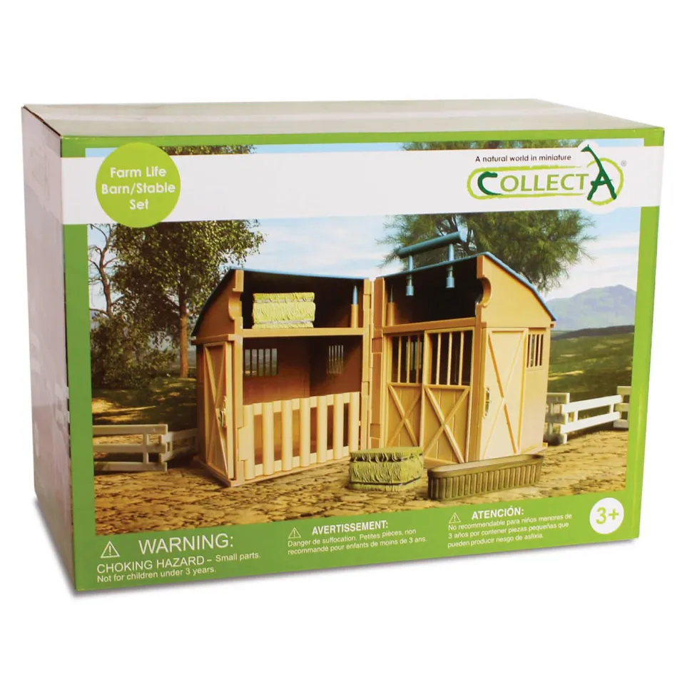 Ecurie pour figurine de Chevaux Collecta livrée avec accessoires.Dimensions : 26,2 x 19,7 cm.