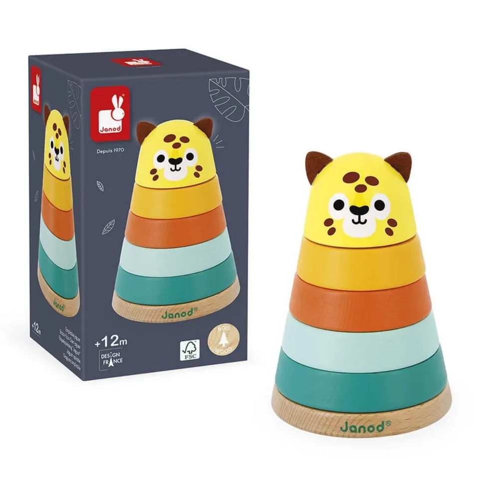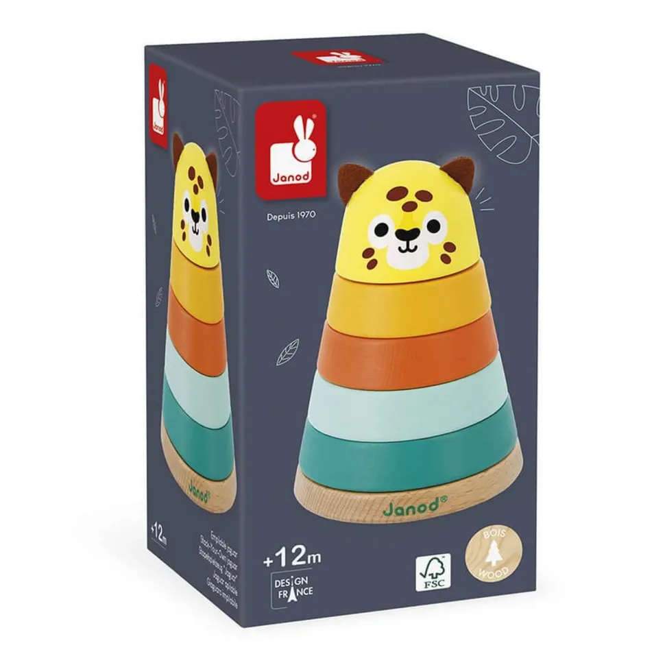 Découvrez ce superbe jouet empilable en bois de la gamme Tropik à l’effigie d’un Jaguar de la marque Janod.