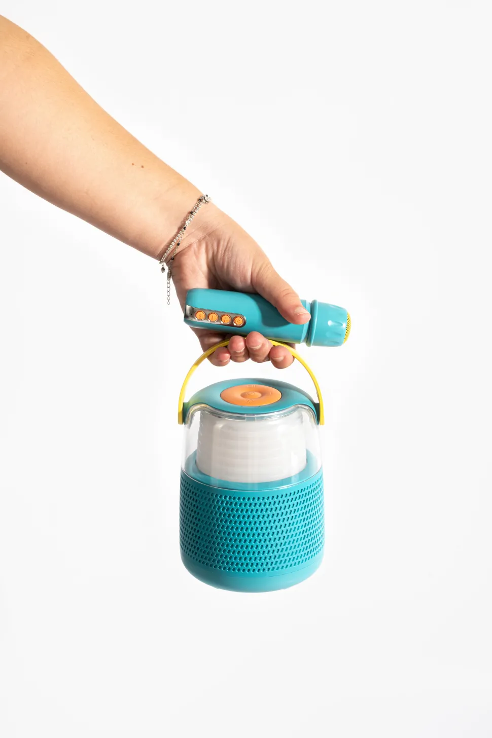 Mais ce n’est pas tout ! L’enceinte KS-80 est également livrée avec un microphone sans fil qui propose plusieurs effets sonores amusants. Vous pourrez transformer votre voix en son grave, aigu ou même enfantin, ajoutant une touche de fantaisie à vos soirées karaoké.
