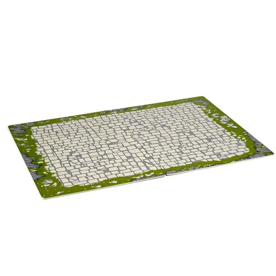 Une base de jeu en bois compatible avec le château du Maître des Armes (référence Papo-60002, mise en évidence sur le visuel 2) et le château des mutants (référence Papo-60052, mise en évidence sur le visuel 3). Dimensions : 73 x 49 x 0.5 cm.
