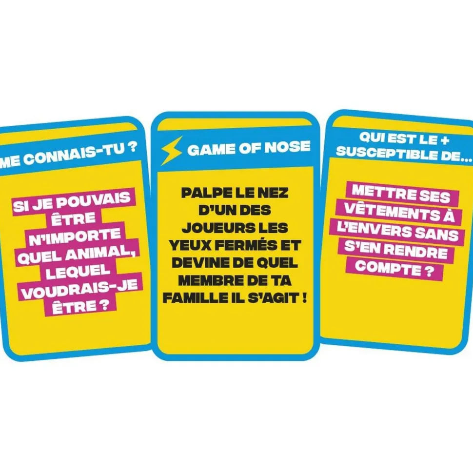 Le concept est simple et engageant : les joueurs s’installent confortablement, tirent l’une des 180 cartes du jeu et lisent la question ou le défi à haute voix. La personne qui remporte le défi ou répond correctement à la question peut garder la carte et marquer un point.