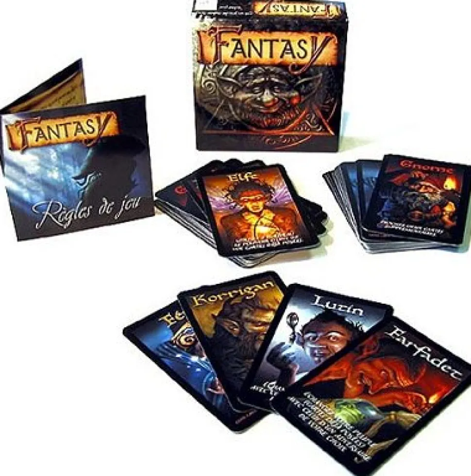 Abracadabrantesque !Il y a encore quelques forêts petites et secrètes, inconnues des humains comme celle de Fantasy. On y trouve toute une fanfare bruyante de créatures magiques. Des farfadets, elfes, korrigans et autres dryades, et même des fées toutes chétives ou des gnomes tout barbus.Et voilà qu’elles décident de se choisir un chef !Après moult chamailleries, on décide de venir autour d’une grande table.Commence alors un formidable fracas magique !De biens étranges pouvoirs Fantasy est un petit jeu de cartes rapide et simple (ce qui ne l’empêchera pas de mettre à l’épreuve votre sens tactique et votre mémoire !). Chaque joueur dispose de 5 cartes en main appartenant à l’un des huit peuples du jeu. Chacune de ces cartes représente l’une des différentes créatures qui peuplent la forêt et chaque peuple dispose d’un pouvoir unique.Le but du jeu est de disposer du plus grand nombre de cartes posées devant vous à la fin de la partie. Pour cela, à chaque fois que c’est votre tour, vous jouez l’une des cartes que vous avez en main en la posant devant vous et en appliquant son pouvoir. Au gré des tours, vous allez pouvoir subtiliser des cartes à vos adversaires (celles qu’ils vous avaient prises ?), retourner des cartes déjà posées dans votre main, échanger des cartes etc.À vous de conserver vos cartes pour le bon moment et à bien cacher votre jeu. Si votre peuple s’agrandit trop vite, vous pourriez bien devenir la cible d’adversaires jaloux !Durée d’une partie : 15 minutes.De 2 à 4 joueurs.Notre avis Un thème tout particulièrement apprécié des juniors dans un format très pratique pour l’emporter chez les copains. Un petit cadeau très sympathique !Note : retrouvez Fantasy II sous la référence Asmodee-KG23.