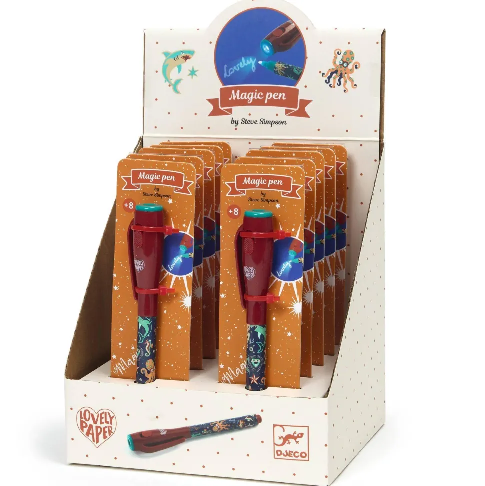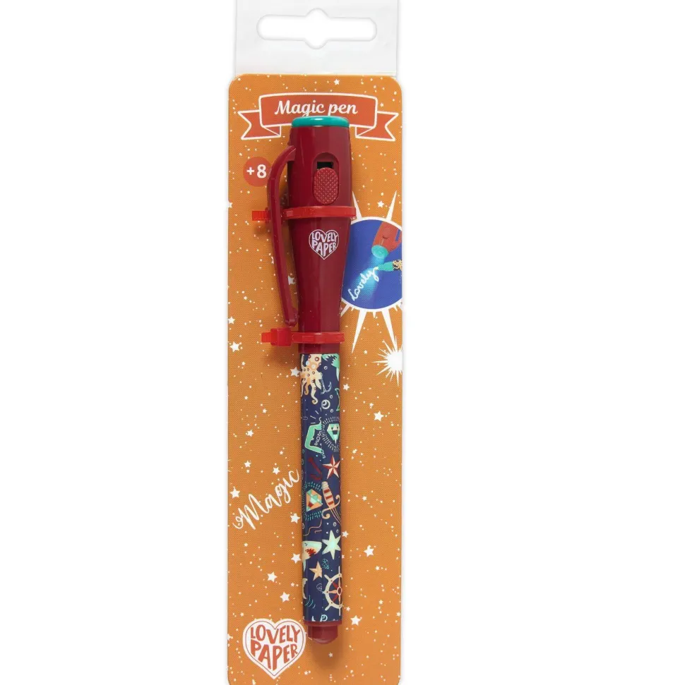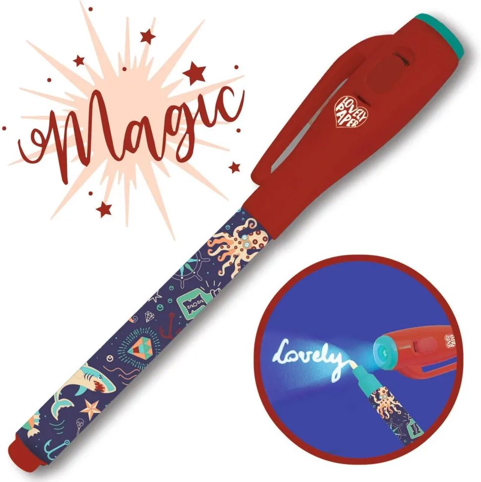 Découvrez la gamme ÉCRIRE, DESSINER avec la collection LOVELY PAPER et le feutre magique Steve de la marque Djeco. Un stylo amusant et astucieux pour écrire des messages secrets grâce à son encre invisible ! À première vue, rien ne s’affiche sur le papier… mais en éclairant avec la lampe UV intégrée dans le capuchon, les secrets se révèlent comme par magie. Une activité créative et mystérieuse qui passionnera les enfants, idéale pour développer leur imagination et leur goût du jeu. Le feutre Steve est équipé d’un bouton On/Off pour activer la lumière UV, et fonctionne avec 3 piles LR44 HD incluses. Parfait pour les jeunes espions en herbe dès 8 ans !