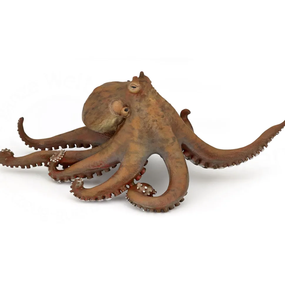 Figurine pieuvre en plastique, peinte à la main.La pieuvre fait partie des céphalopodes benthiques. Son corps entièrement mou mis à part son bec, possède 8 bras tentaculaires qui sont dotés de très nombreuses ventouses. Il fait preuve d’une intelligence et d’une mémoire remarquable qu’on ne retrouve pas chez les autres invertébrés.Dimensions : 20 x 13.5 x 6.5 cm.