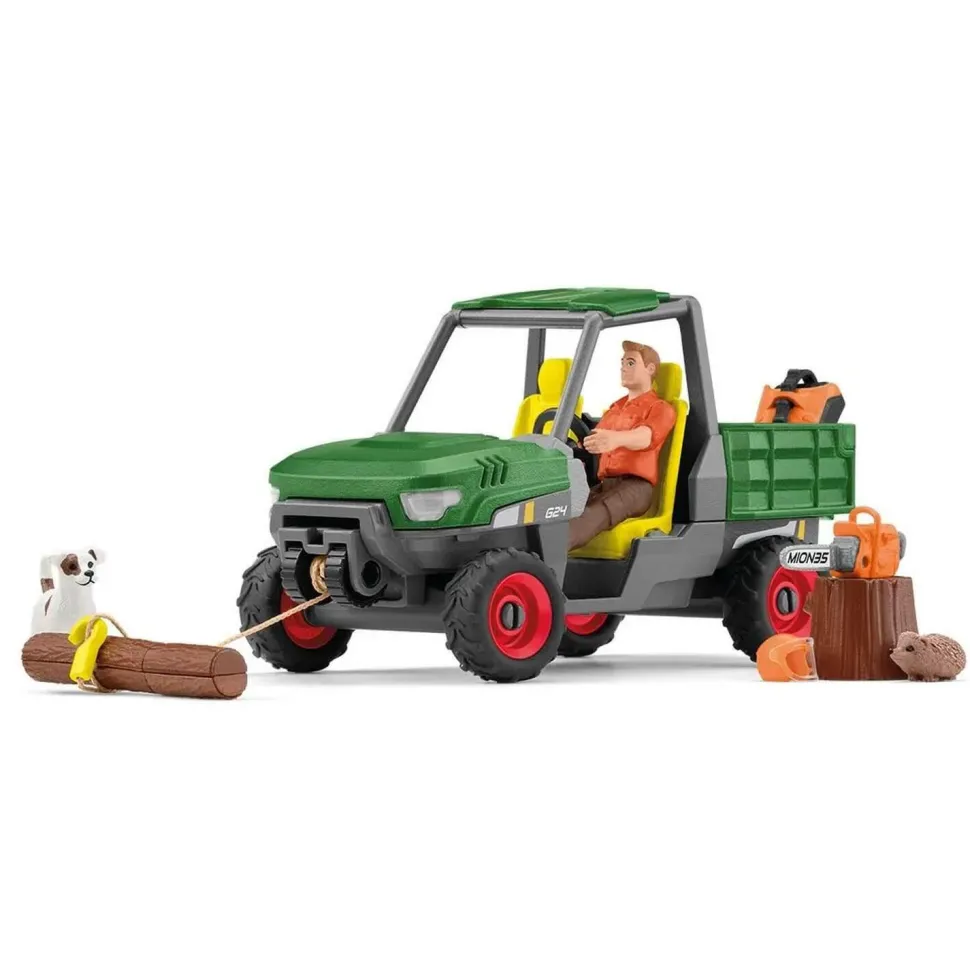 Figurines garde forestier et véhicule de la marque Schleich.