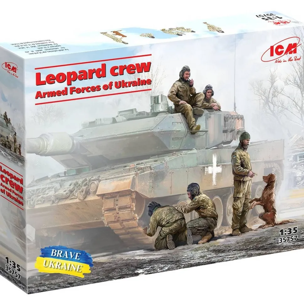 Figurines militaires : équipage Leopard 2 force armée ukrainienne de la marque ICM.