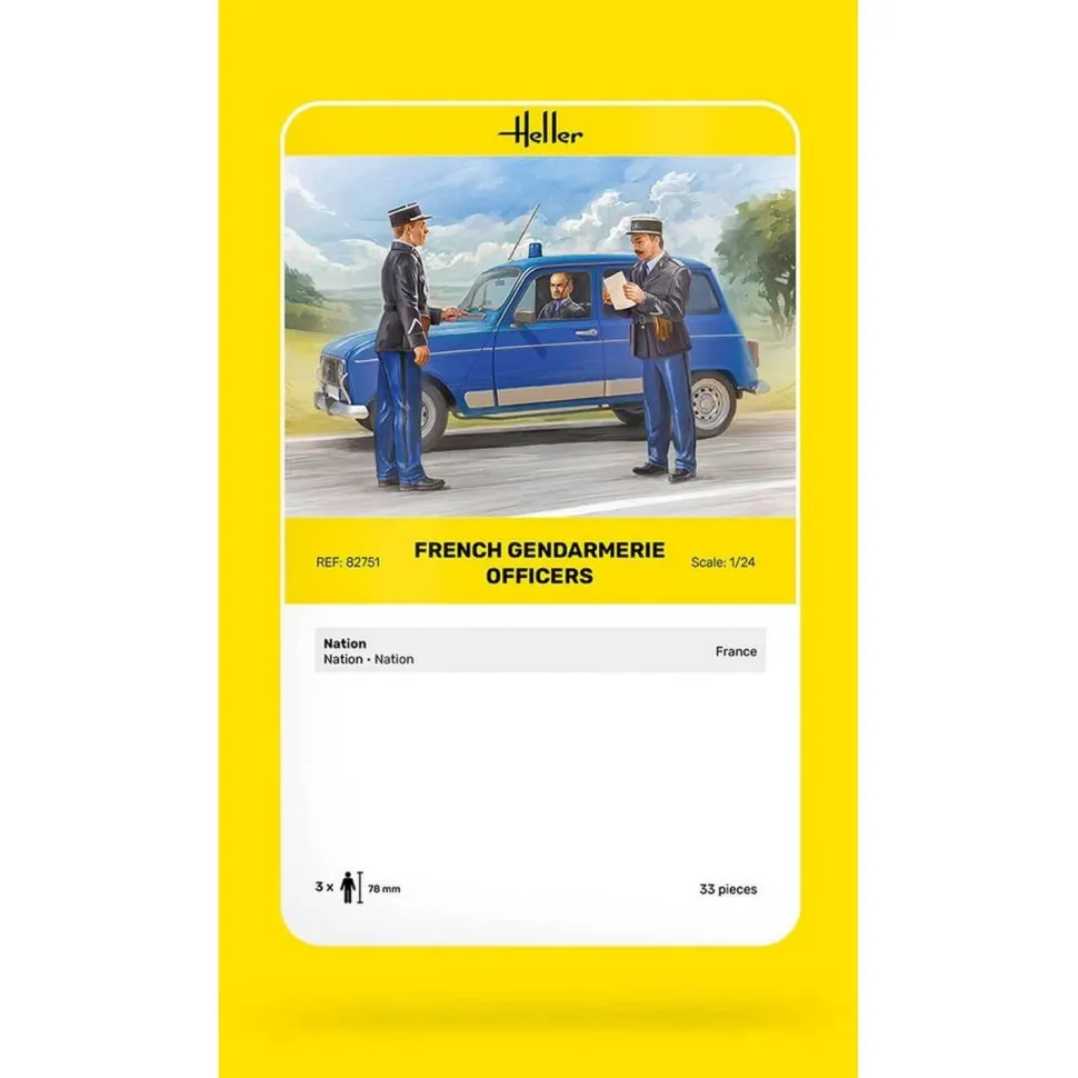 Ajoutez de l’autorité et de l’atmosphère à votre diorama avec le 1:24 Officiers de la Gendarmerie française – un kit de modélisme en plastique finement détaillé comprenant trois personnages en uniforme authentique. Parfait pour compléter les véhicules de la police française ou pour créer des scènes de rue animées avec une profondeur narrative.