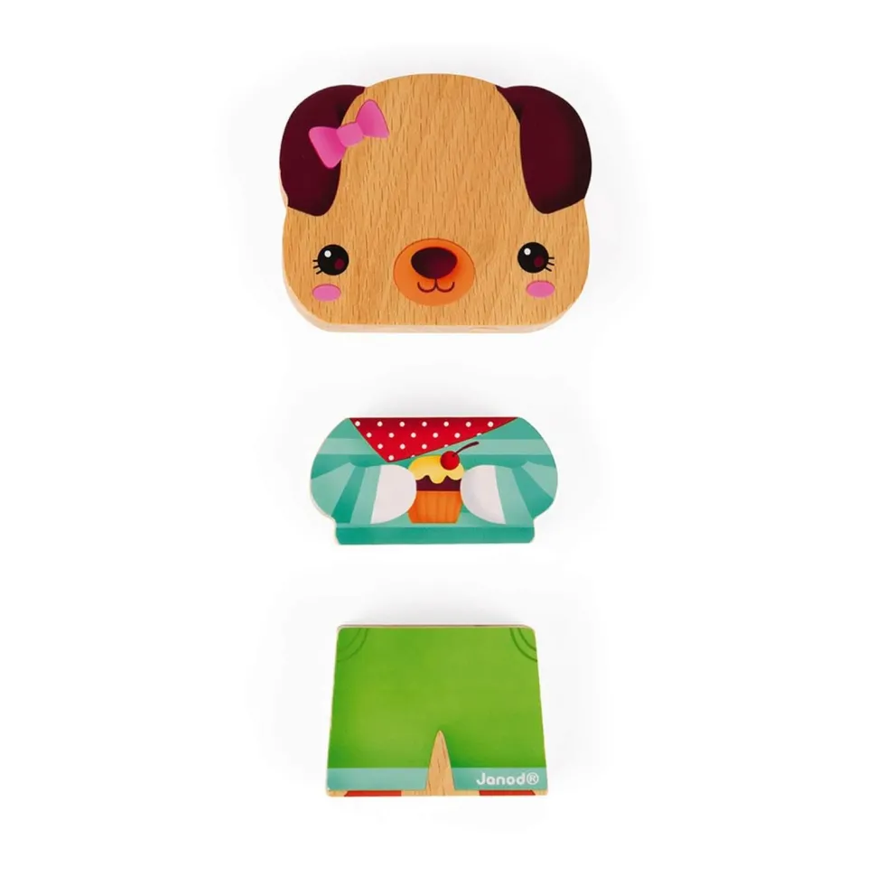 Amuse-toi avec les animaux de compagnie ! Grâce à ces jouets Magnétiques de la marque Janod, votre enfant va pouvoir s’amuser à constituer, reconstituer ou mélanger les 3 animaux.Chacun des magnets animaux se décomposent en 3 pièces. L’enfant devra ainsi reformer l’animal ou alors laisser parler sa créativité pour en créer un nouveau.Chat, chien, lapin, votre enfant pourra jouer tranquillement avec ses nouveaux amis.A partir de 18 mois, il pourra développer son sens de l’association et d’imagination.Dimensions : 32 x 4 x 18 cm.