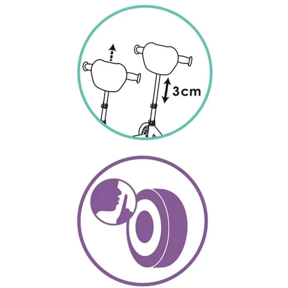 Quel plaisir de rouler avec la Patinette Gabby 3 roues de Smoby ! C’est une belle patinette 3 roues, dont le cadre, la fourche et le guidon sont en métal. Très résistant, le guidon est réglable en hauteur sur 2 positions : 67 et 70 cm pour s’adapter à la croissance de votre enfant. On aime les roues silencieuses qui renforcent cette sensation de fluidité et le plaisir de la glisse. Les repose-pieds de la patinette Gabby 3 roues sont joliment décorés.