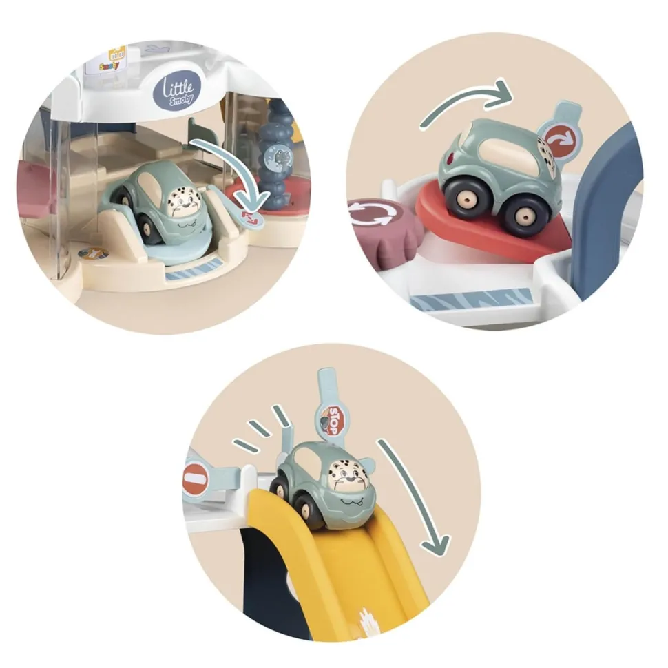 Ce premier garage Little Smoby a déjà de nombreuses fonctions permettant à votre enfant de circuler et de s’imaginer pleins d’aventures avec ses véhicules.