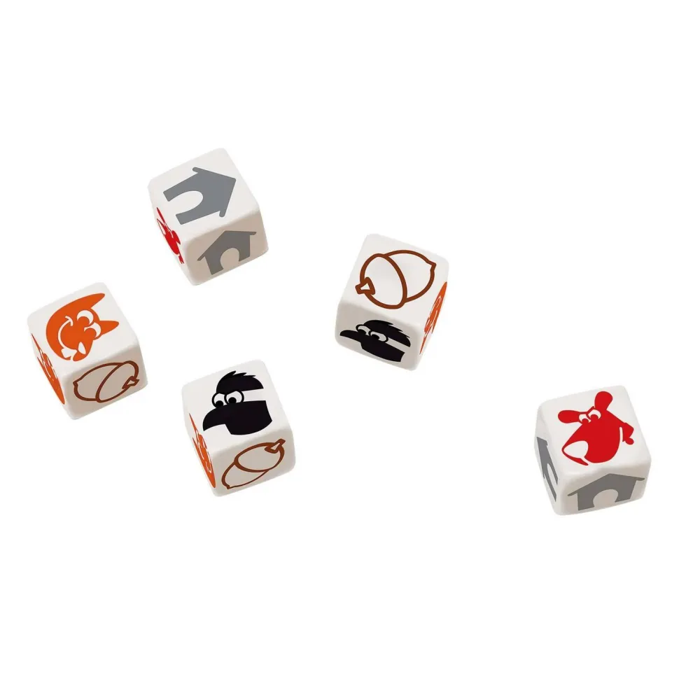 Les joueurs tentent de marquer le plus de points possible sous forme de noix tout en lançant les dés. Les écureuils peuvent être roulés à nouveau. Si seuls des écureuils apparaissent sur les dés, une confrontation passionnante s’ensuit. Les geais des pins font obstacle à votre mission. Si un joueur atteint au moins 50 points, la partie se termine. Le tour peut être joué jusqu’au bout si nécessaire.