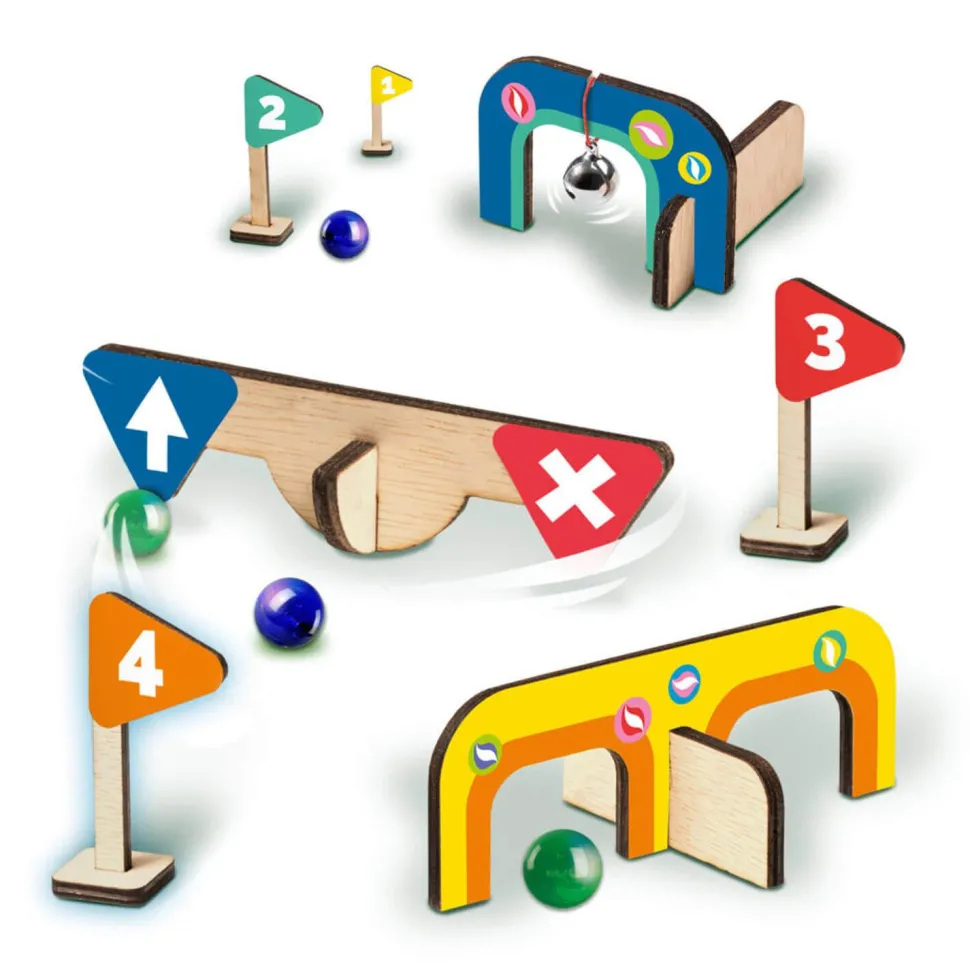 Description du produit : Golf de billes : Parcours minigolf en bois