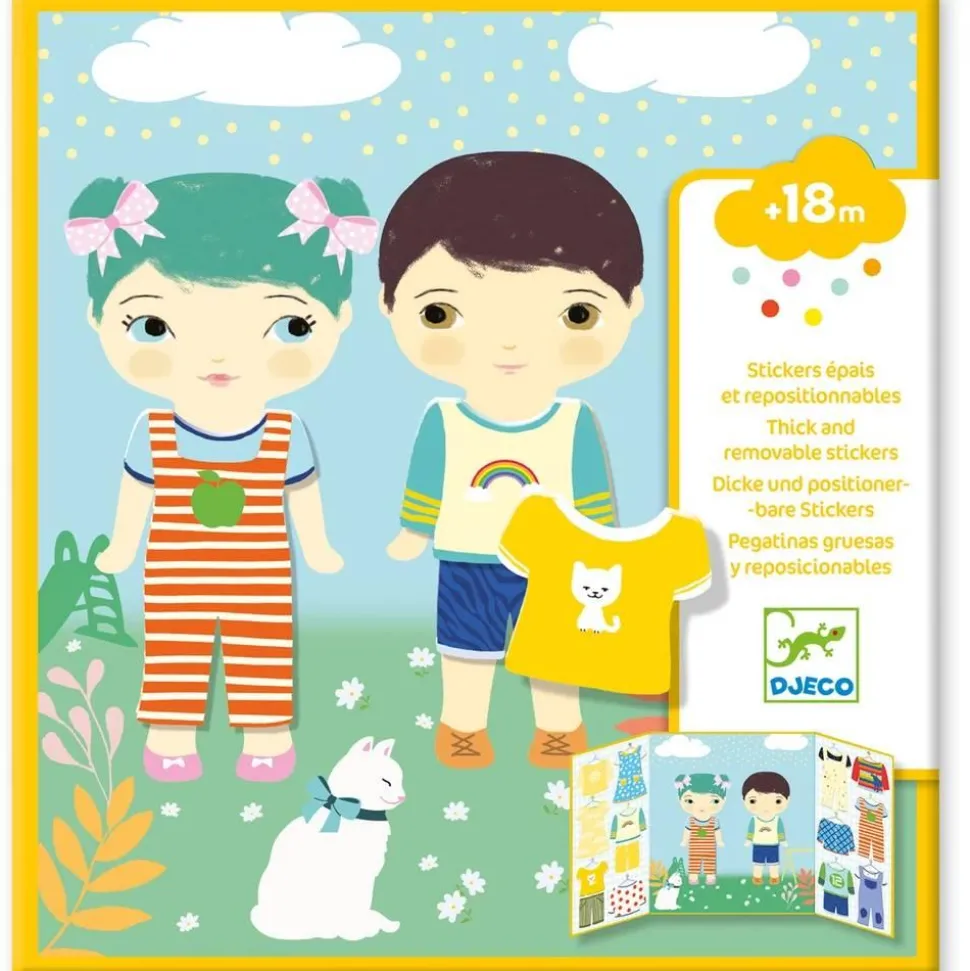 À partir de 18 mois, votre enfant pourra profiter des gommettes « habits » de la marque Djeco.