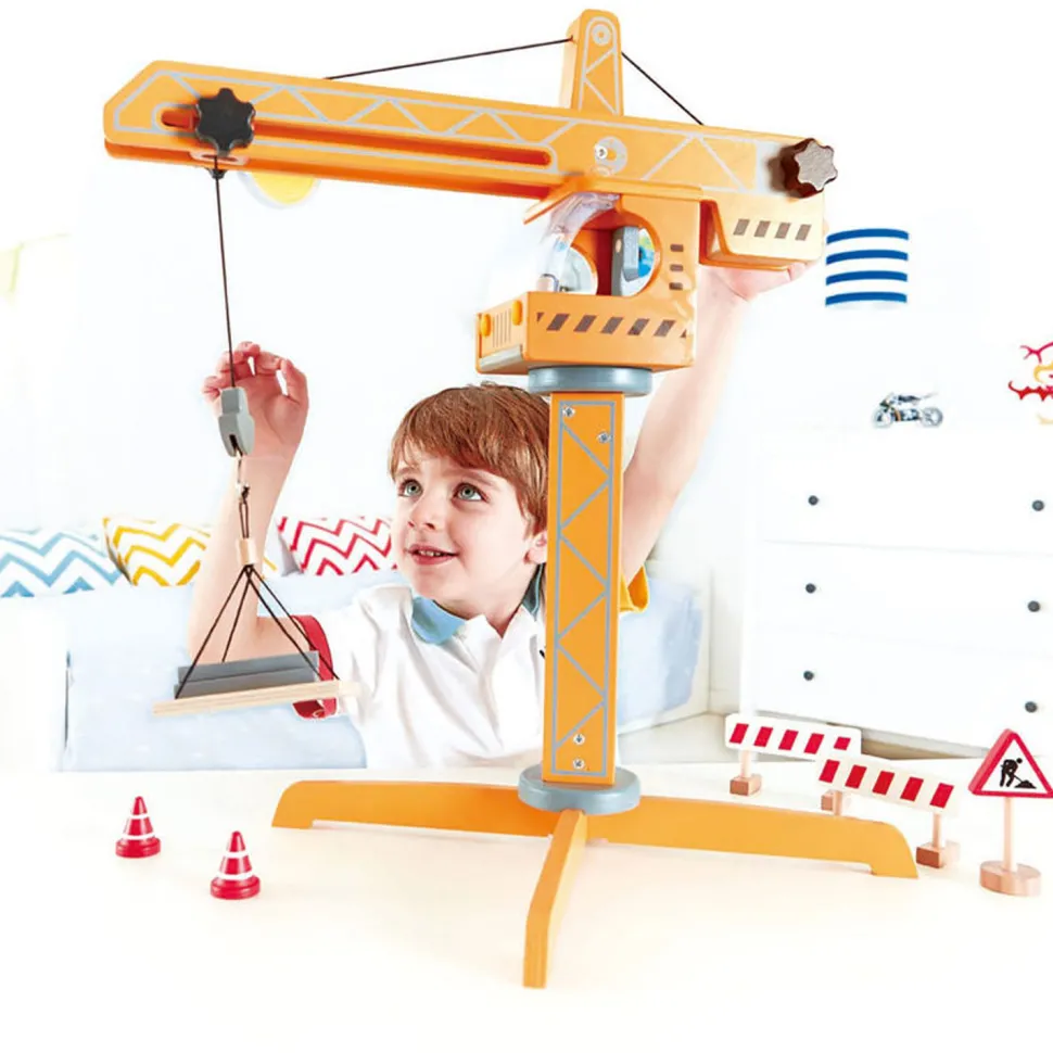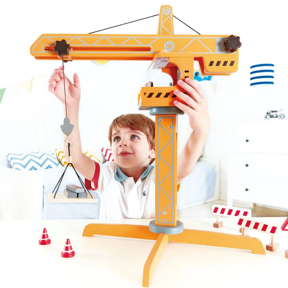 Les amateurs de chantier et de constructions vont être ravis avec cette grue. Ils vont pouvoir se lancer dans des réalisations gigantesques ! Les matériaux sont arrivés sur le lieu des travaux. La grue est assemblée et prête à entrer en action. Balisez la zone d’intervention avec les barrières et les plots, pensez à mettre en amont les panneaux triangulaires annonçant un danger ! Ensuite prenez les fonctions d’un grutier et commencez les rotations de la grue pour donner un coup de pouce à l’avancée de votre chantier…La plateforme vous permettra de déplaces des charges lourdes en un minimum de temps. Avec vous aux commandes, il est sûr que les délais seront respectés. Un futur bâtisseur est né….Dimensions de la grue : 36 x 12 x H 50 cm.