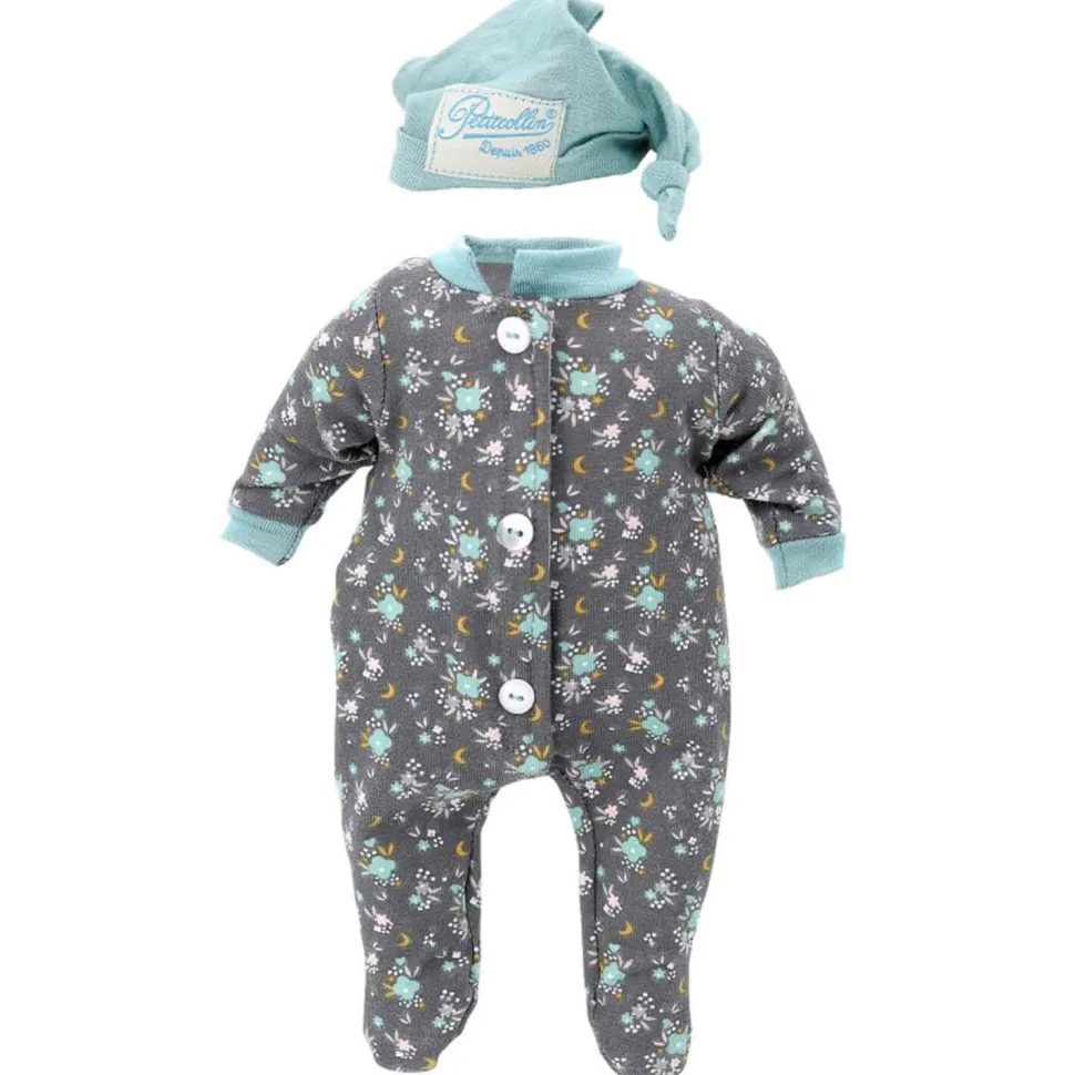 Cet ensemble poupée de la marque Petitcollin est composé d’un pyjama à motifs une pièce et son bonnet de nuit bleu. Cettetenue sera idéale pour mettre votre poupée Minette dans sont lit.
