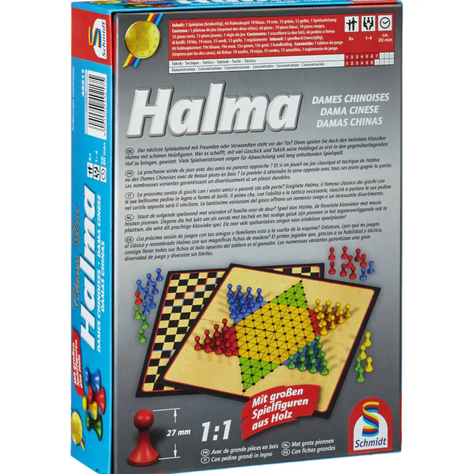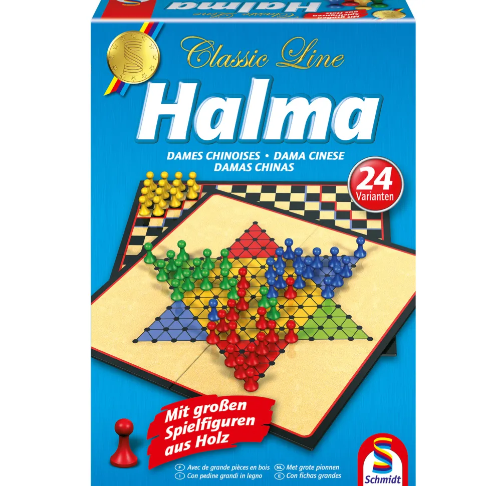Halma : Dames chinoises – Classic Line Le nom « Halma » vient du grec ancien et signifie « saut « . Les joueurs essaient de saisir les occasions pour réaliser des sauts en série. En même temps, on tente de gêner les efforts des autres joueurs.Ce jeu classique comporte 66 pions en bois et offre 24 variantes pour encore plus de plaisir. Nombre de joueurs : 1 à 4.Dimensions de la boite : 19 x 27.5 x 6.7 cm.