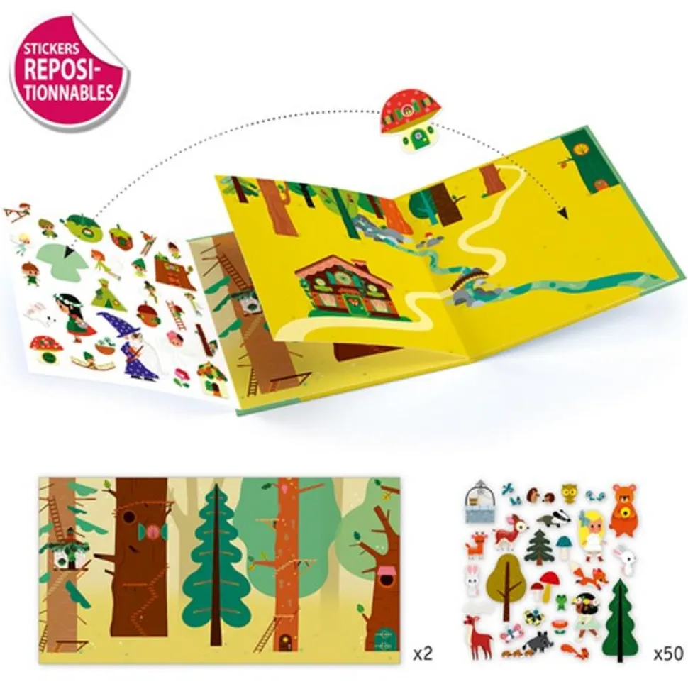 Djeco vous présente sa nouvelle activité : Histoire de stickers sur le thème de la forêt magique.