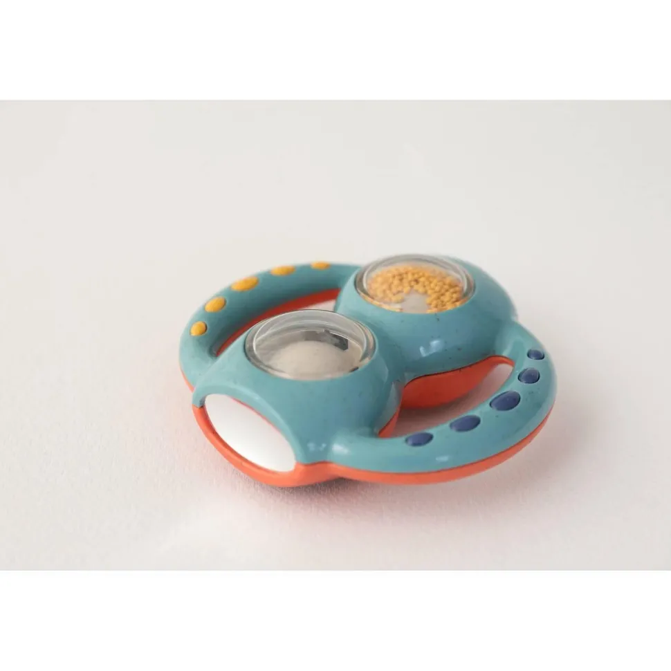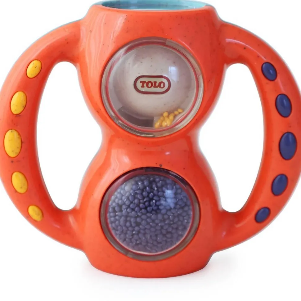 Découvrez un grand hochet coloré avec des petites billes de la gamme BIO de la marque Tolo !