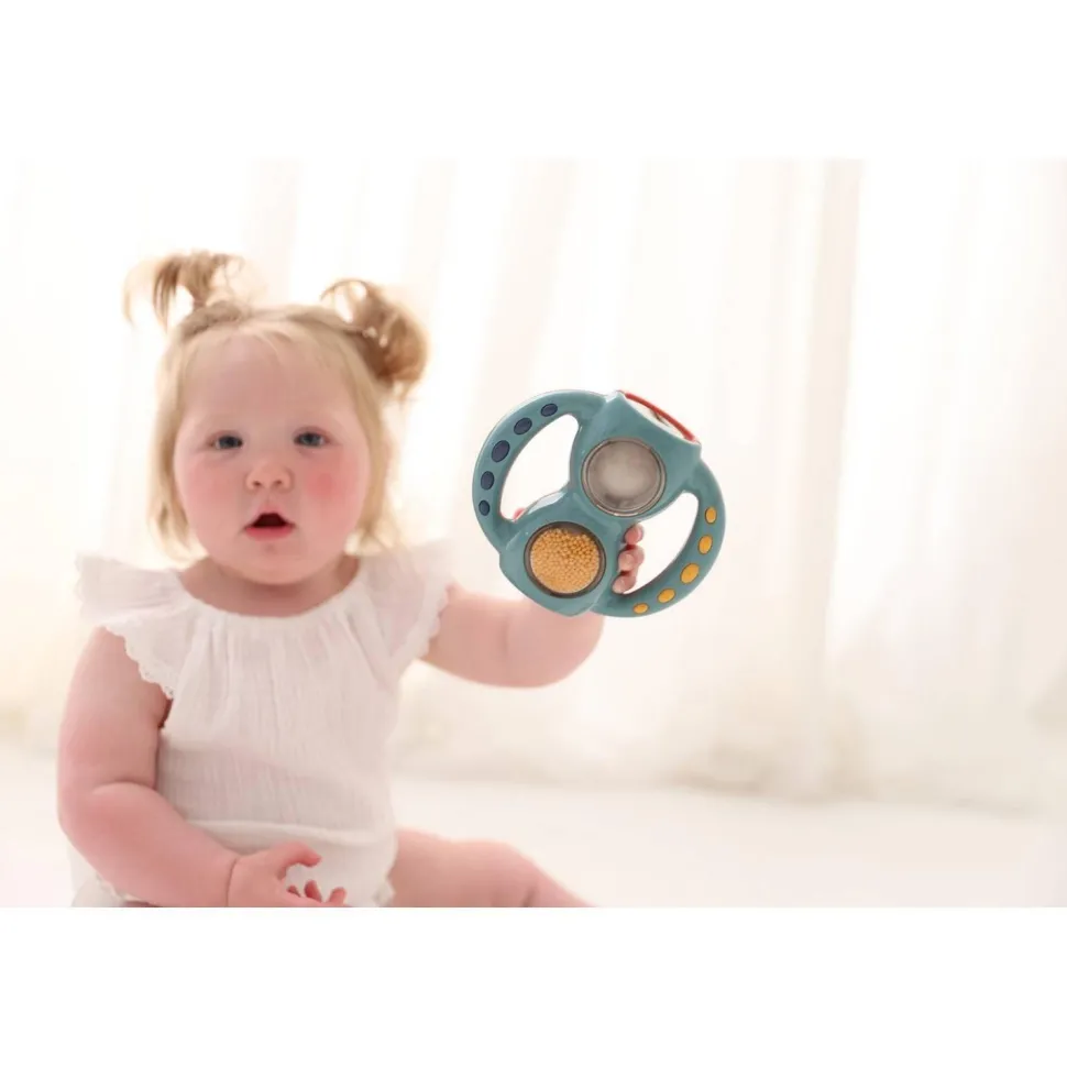 Retournez le hochet et observez comment les billes roulent d’un côté à l’autre. Regardez les billes magiques changer de couleur lorsqu’elles atteignent l’autre côté. Le hochet est facile à tenir en main et convient à la bouche de votre bébé.
