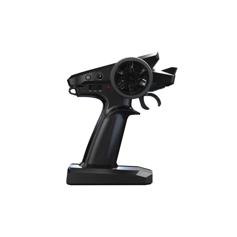 La télécommande pratique à 3 canaux transmet toutes les fonctions sans interférence et permet de faire fonctionner plusieurs modèles en parallèle grâce au système 2,4 GHz. Le modèle est disponible sous forme de package RTR (Ready-to-Run), ce qui signifie que tous les composants – à l’exception des piles domestiques standard pour la télécommande – sont déjà inclus dans la livraison. L’Hyper Go Truggy peut commencer à fonctionner immédiatement après avoir chargé la batterie pour la première fois.