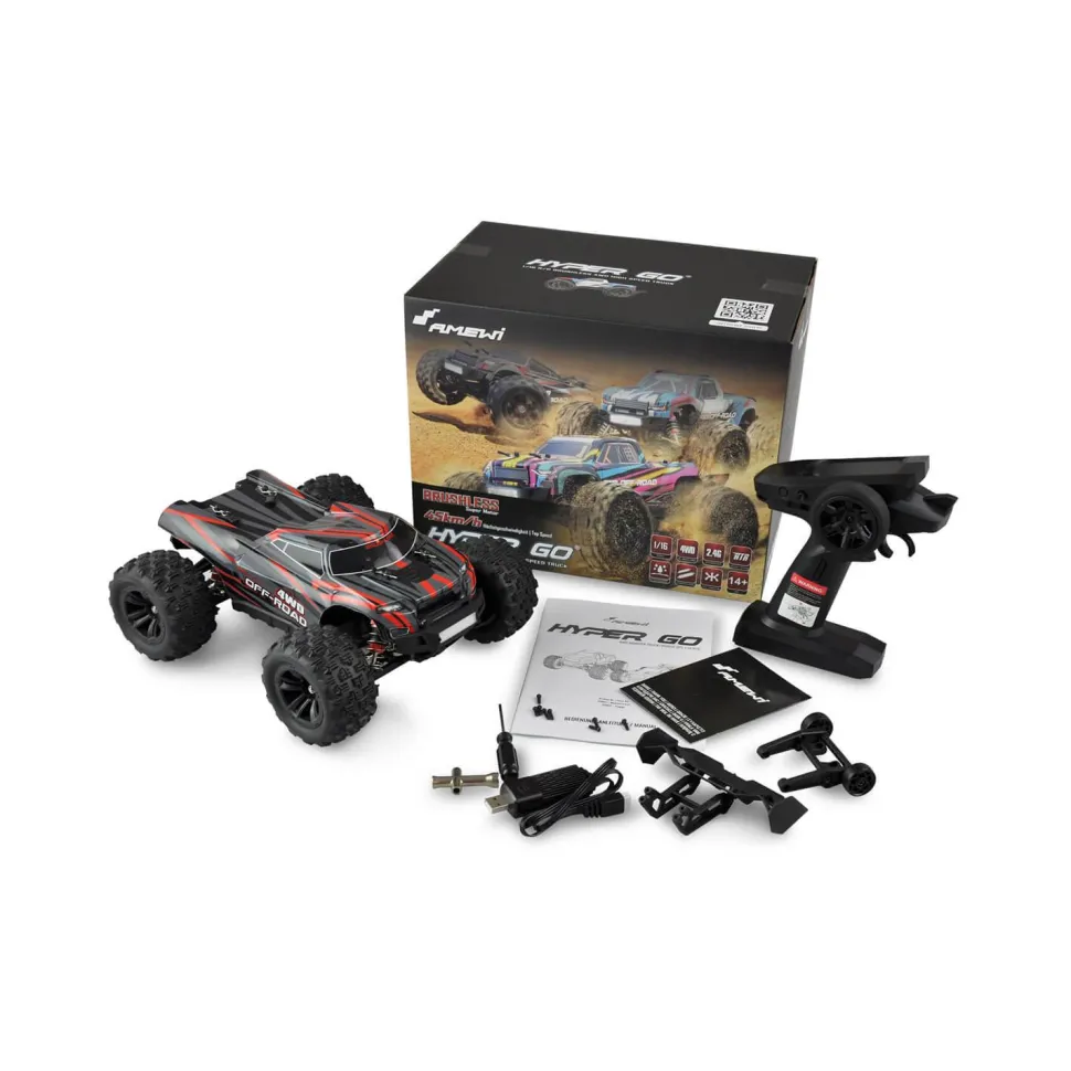 Caractéristiques détaillées : Hyper Go RTR Truggy Brushless 4WD 1:16e – Noir/Rouge