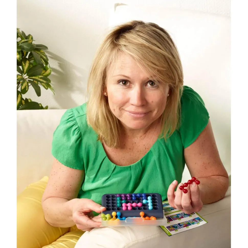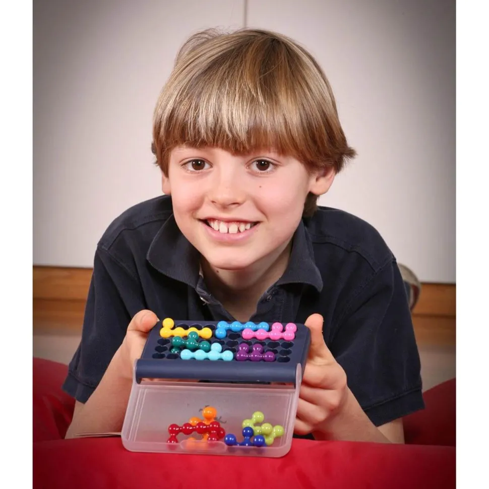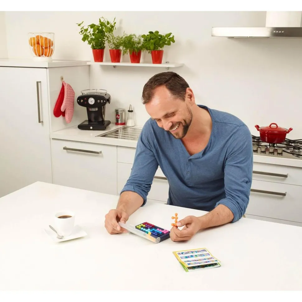 Comment encastrer des pièces en 3D dans un plan de jeu en 2D ?! IQ-Fit est un jeu de logique pour un seul joueur qui propose 120 défis et 5 niveaux de difficulté à partir de 6 ans.Contenu : – 1 coffret de jeu et rangement- 10 pièces de couleur en 3D- 1 livret de règles contenant 120 défis et toutes leurs solutions.Suivant les indications du défi choisi, vous placerez les pièces demandées, puis mettrez à contribution vos neurones pour encastrer correctement les pièces restantes afin de remplir le plan de jeu. Le but du jeu est de compléter les cases vides avec les pièces disponibles. Mais le défi ne s’arrête pas là : les pièces de jeu sont en 3D alors que le jeu est en 2D… Vous devrez donc trouver dans quel sens utiliser ces pièces de couleur pour les coucher sur le plan de jeu, en comblant les espaces qui vous semblent correspondre.Les premiers niveaux donnent suffisamment d’indices : vous devrez placer une petite moitié des pièces alors que dès le niveau expert, vous devrez positionner 8 pièces sur 10.Le coffret de rangement fait de ce jeu un parfait jeu de voyage, à emporter partout.