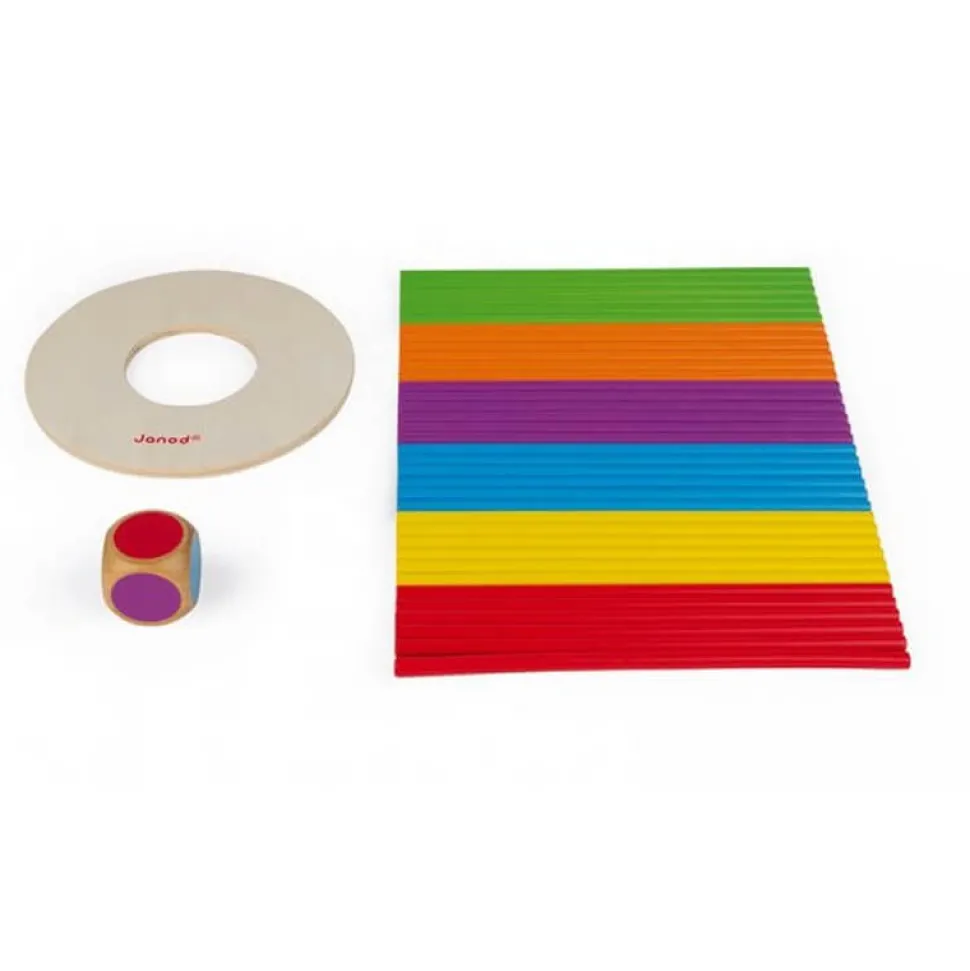 Découvrez le jeu d’adresse Crazy Sticks de la marque Janod. Il s’agit d’un jeu adapté à partir de 3 ans et idéal pour de bonne partie de rigolade en famille ou entre amis. Pour gagner, il vous faudra être très stratégique et précautionneux pour ne pas faire tomber la tour de crayon ou faire toucher le disque par terre. Pour jouez lancer les dés, inspirez un bon coup et tentez de retirer le maximum de bâtons colorés.Le jeu contient : un disque perforé en bois, 36 bâtons de 6 couleurs différentes, 1 dé, 1 règle du jeu.Une partie peut se jouer de 2 à 6 joueurs et dure environ 15 minutes.
