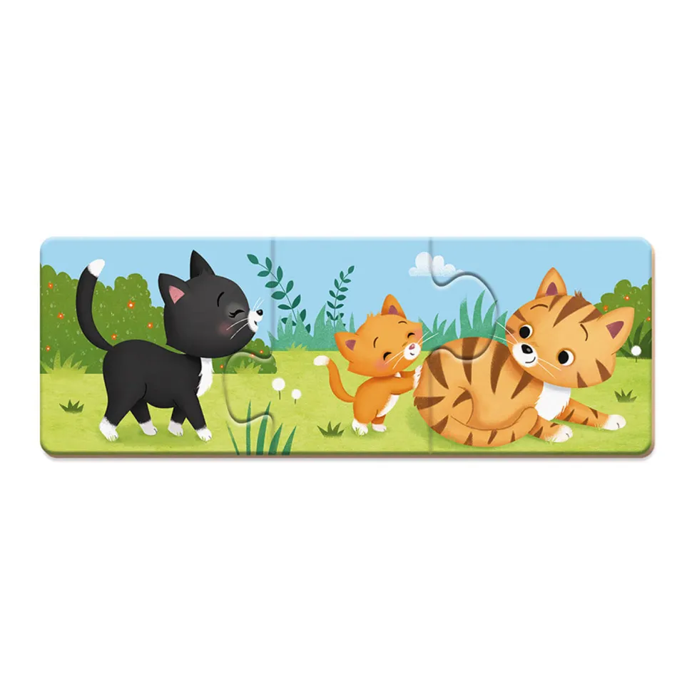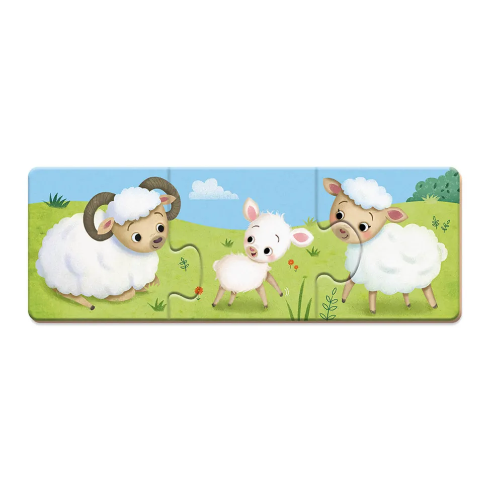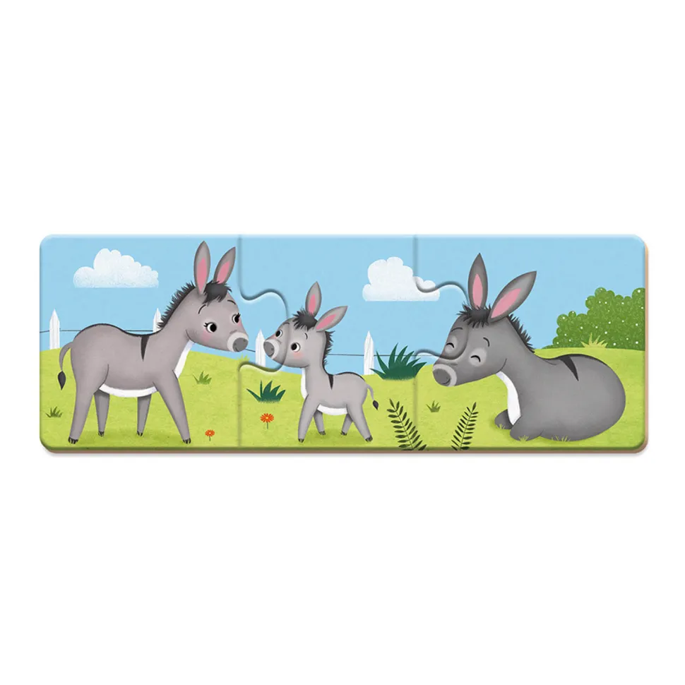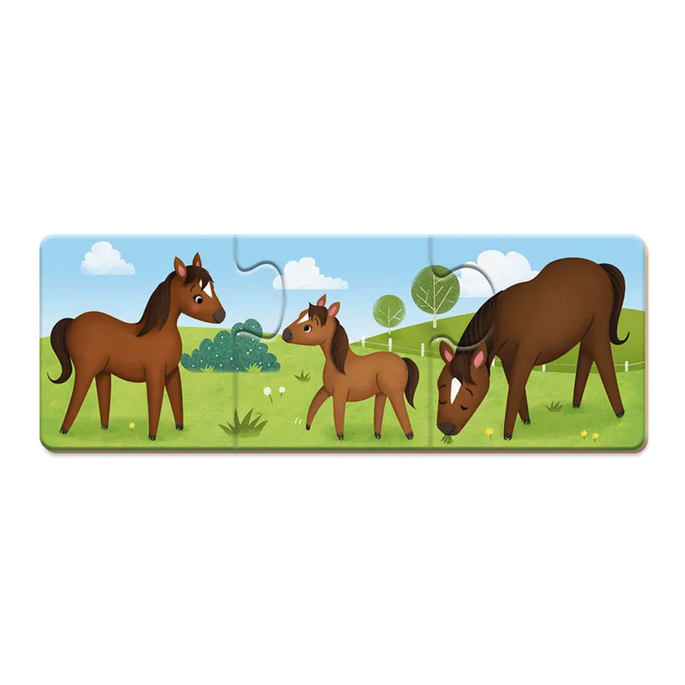 Un jeu d’association et d’apprentissage idéal pour initier les petits aux puzzles !Les bébés animaux ont perdu leur papa et leur maman, aidez-les à les retrouver ! Ce jeu consiste pour l’enfant à identifier et à associer les animaux et leur famille. Il développera la motricité fine de votre enfant, et l’aidera à découvrir et à associer deux images conçues comme des pièces de puzzle à assembler ensemble. Contenu de la boîte :- 10 puzzles de 3 pièces. Ce jeu est livré dans une jolie boîte très pratique pour ranger toutes les pièces, parfait comme cadeau d’anniversaire !Dimensions de la boîte : 15,8 x 4 x 25 cm.Dimensions d’un puzzle : 21 x 7,5 cm.