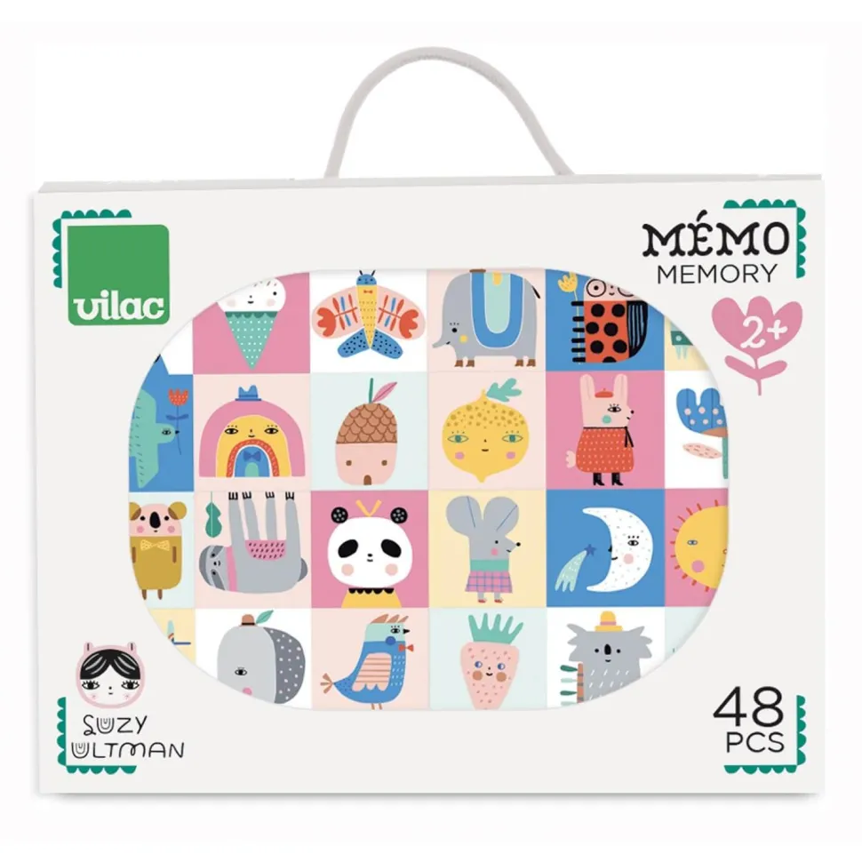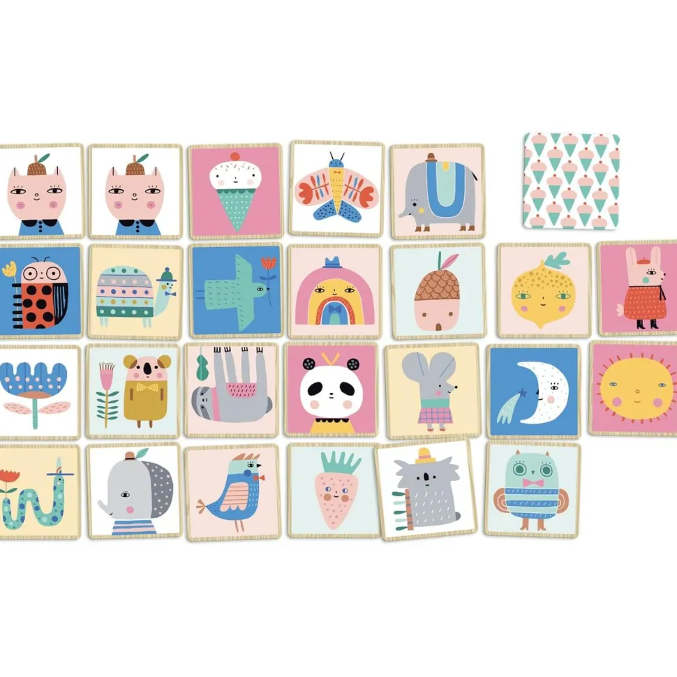 Craquez pour ce joli jeu de mémo de 48 pièces en bois, illustré par Suzy Ultman dans un univers kawai-chic doux et pétillant.