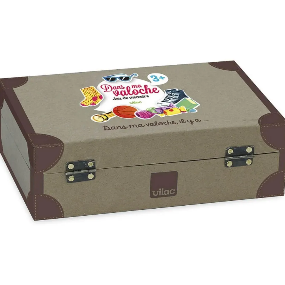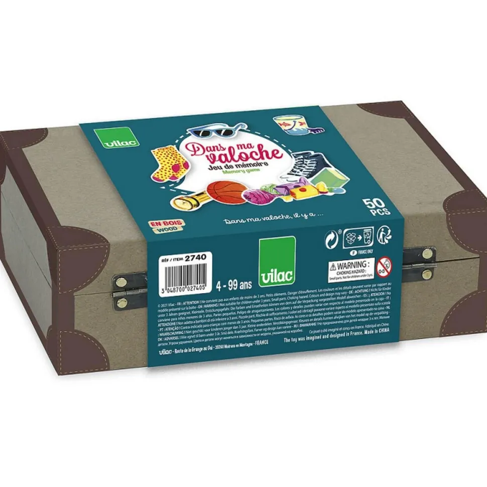 Vilac revisite ce jeu de mémorisation oral que tout le monde connait : « Dans ma valise, j’ai mis… ». Le but est simple : chaque joueur pioche une pièce en bois dans le sac en coton et la cache dans la valoche en indiquant ce qu’il vient de piocher. Le suivant fait de même en répétant ce qu’elle contient… Attention à ne rien oublier, petit vacancier !!!