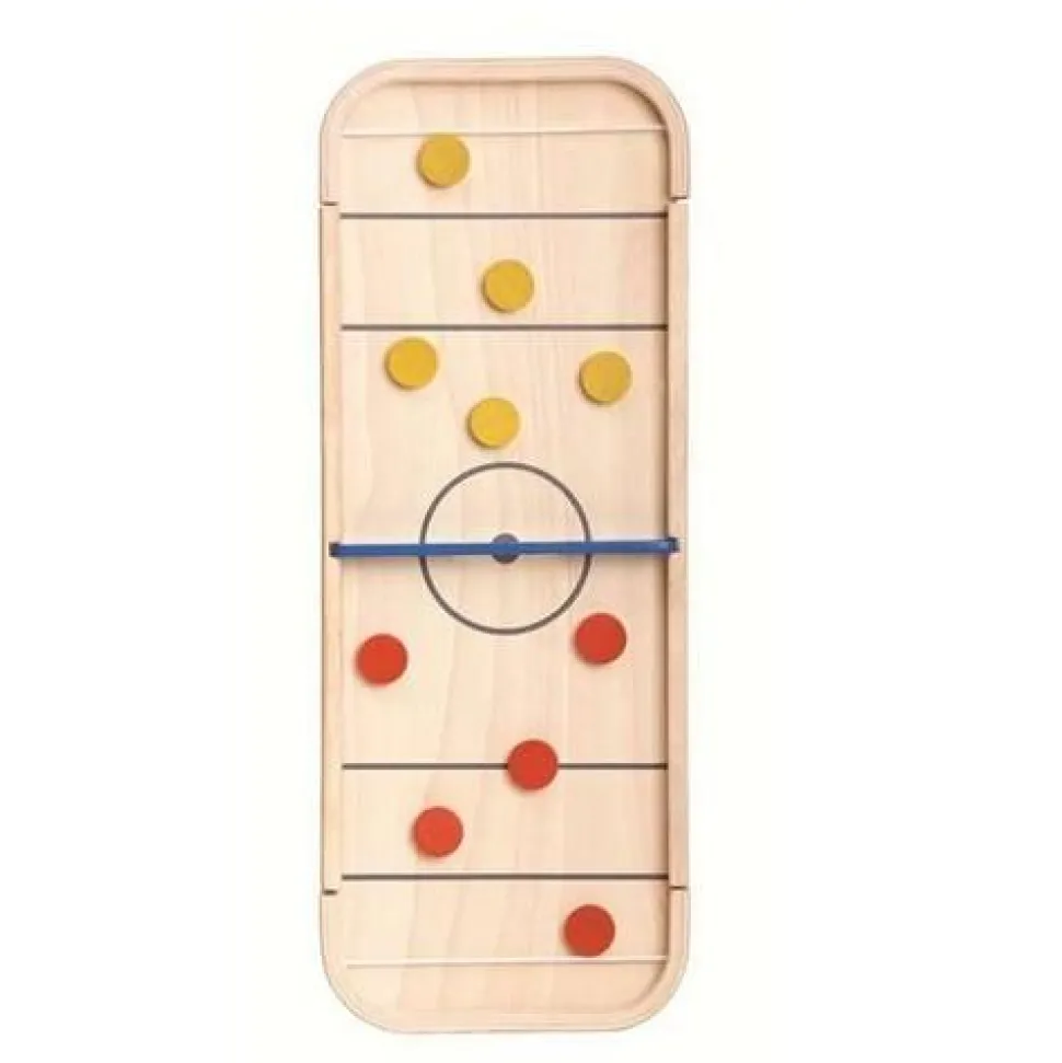 Avec ce plateau multi-jeux réversible en bois. Le jeu de palets ou le passe-trappe est un jeu d’adresse et de rapidité excitant et convivial qui vous fera passer des moments inoubliables! Le but du jeu est d’être le premier à envoyer tous les palets dans le camps adverse en les faisant passer dans l’unique trappe prévue à cet effet à l’aide d’un gros élastique. Pour les tous petits simplifiez le jeu en retirant la barre « passe-trappe’. De l’autre côté : faites le meilleur score avec vos palets. Des heures de jeux en perspectives…