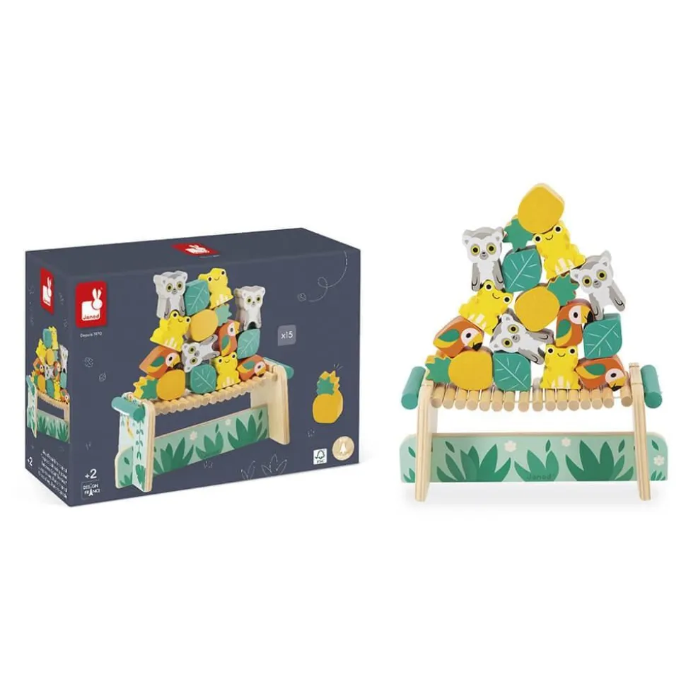 Découvrez ce joli jeu d’équilibre tropical Janod de la gamme Tropik au style fun et coloré pour rigoler en famille !