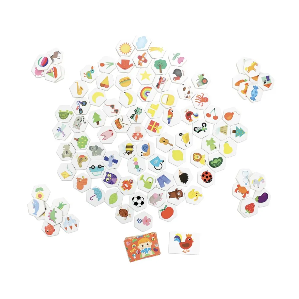 Outékaché : un jeu d’observation et de rapidité, il faut être le premier à retrouver le dessin de la carte piochée. Attention aux pièges !Contenu :- 100 pièces en bois- 100 cartes- 1 seau de rangementAvec Outékaché de Vilac, votre enfant doit retrouver les images (animaux, véhicules, légumes, vêtements…) que lui indique sa pioche. Attention, il ne faut pas se tromper, certaines cartes se ressemblent !! Jeu de rapidité ou jeu de découverte selon les âges, en famille ou avec les amis. Les enfants retournent leurs cartes, ils observent, ils mémorisent, ils repèrent et…. ils gagnent ! Essayez d’être le plus rapide !A partir de 3 ans.