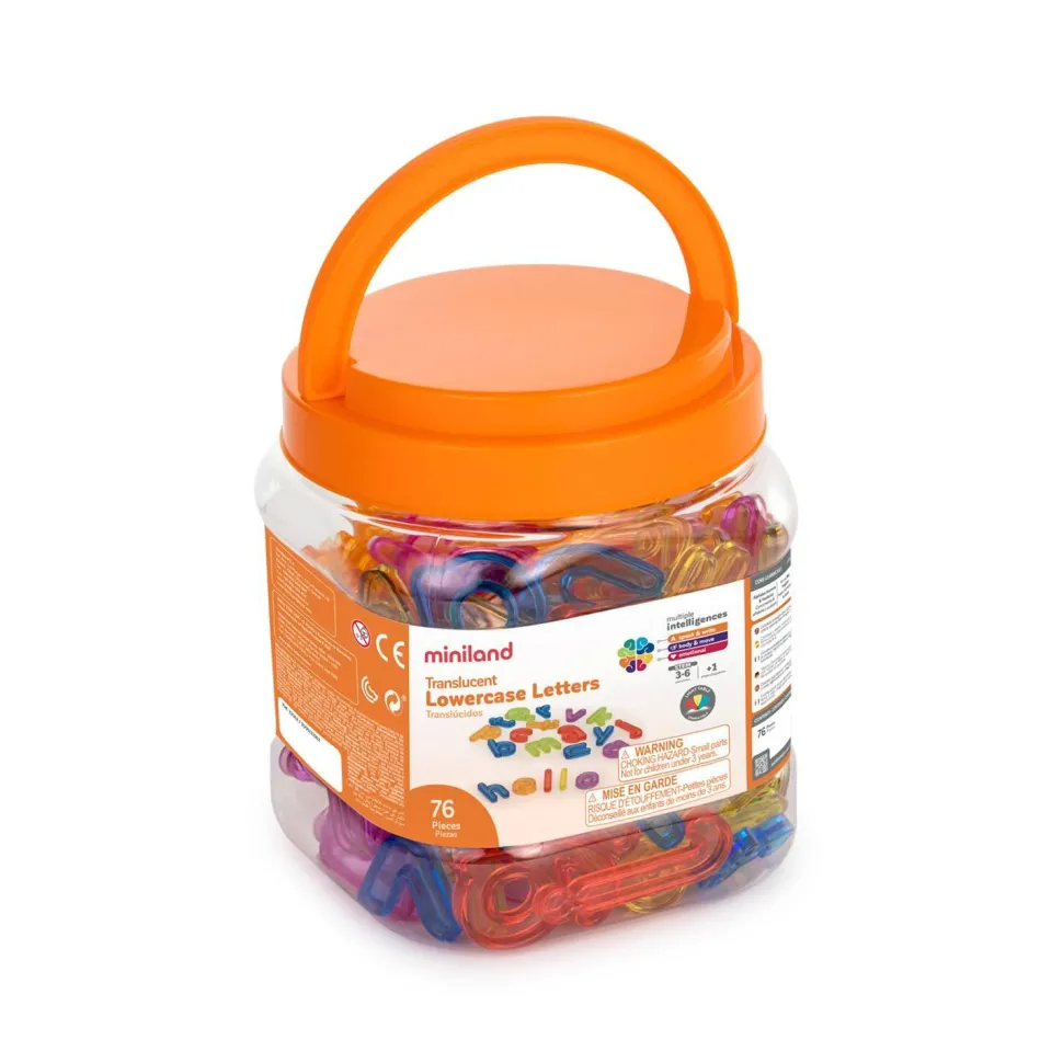 Jeu de lettres minuscules translucides de différentes couleurs. Ce jeu rend l’apprentissage des lettres et de l’alphabet beaucoup plus amusant pour les petits. Convient pour jouer sur les tables de chevet. Dimensions : 3cm. Convient aux enfants de 3 à 6 ans.