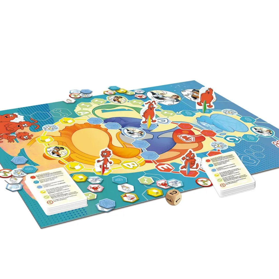 Voyage dans le corps humain en compagnie des personnages de la série ! Sois le premier à terminer le parcours et à ramener les bulles d’oxygène jusqu’au coeur. Attention aux obstacles disséminés dans tout le corps par le teigneux (bactérie) et le nabot (virus) ! Avec nouvelles questions et matériaux 100% recyclables!