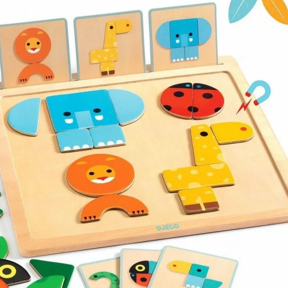Grâce à son plateau et à ses pièces magnétiques, tu vas pouvoir t’amuser à recomposer les animaux. Éléphant, coccinelle, girafe, lion… et pleins d’autres t’attendent !