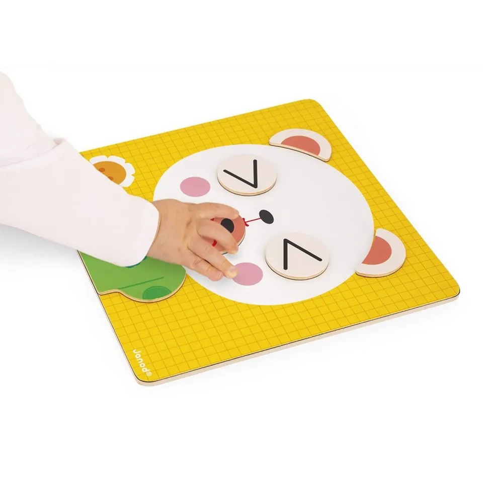 Pour développer leur langage et décrire leurs sentiments parfois complexes et forts, les petits sont accompagnés par un petit ours : Teddy. Ce jeu magnétique se compose d’1 grand plateau, de 30 magnets et de 7 cartes modèles. Elles représentent les différentes émotions, de la joie à la colère, en passant par l’amour et la peur. En famille, représentez chaque émotion ressentie par le petit ours en positionnant les aimants !