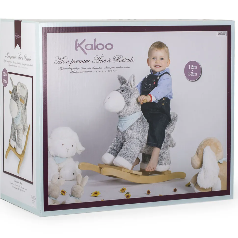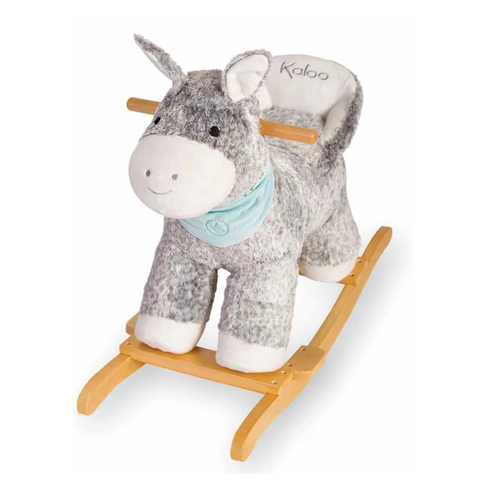 Hue dada! C’est partie pour une balade à dos d’âne!En avant! En arrière! Votre enfant ne se lassera pas de se balancer sur ce superbe âne à bascule!Kaloo revisite un grand classique du jouet, en mettant en scène l’un des personnages de la collection « Les amis », à savoir l’âne Régliss.Dans cette déclinaison grand format à bascule, il conserve la même douceur que les peluches et marionnettes à son effigie. Il porte autour du coup son joli bandana vert d’eau, symbole de la collection.Cet animal à bascule de grande qualité a été étudié pour le confort et la sécurité de votre tout-petit. L’assise est soutenue par un dossier qui maintiendra bébé bien en place sur le dos de son âne. Le système de bascule et les poignées en bois sont à la fois robustes et très esthétiques.Mon premier âne à bascule. Cet âne, avec son assise basse (à 35cm du sol) est parfait pour les bébés-marcheurs ! Il fera également un merveilleux élément de décoration dans la chambre de bébé. Contient : 1 jouet à bascule. Ce produit a obtenu un Pal Award (récompense qui distingue les jeux et jouets permettant l’apprentissage du langage dès le plus jeune âge).