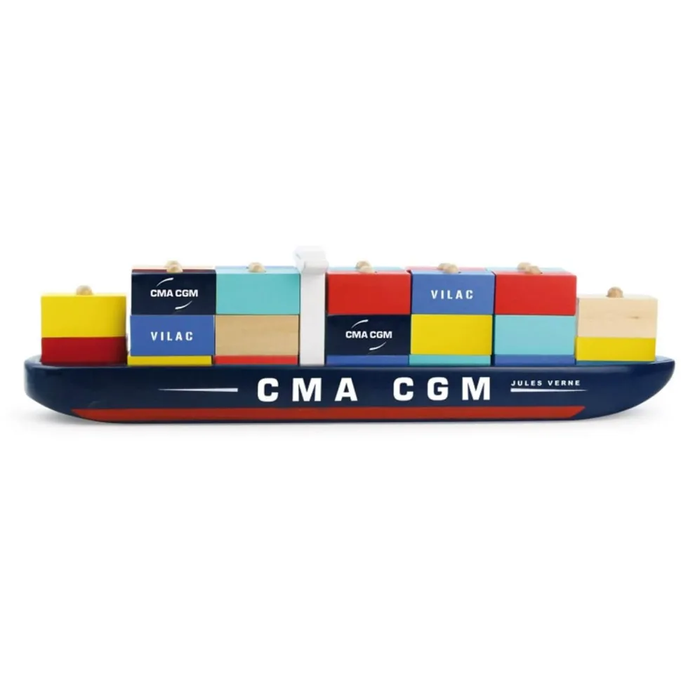 Description du produit : Jouet à empiler : Bateau Porte-conteneurs Jules Verne