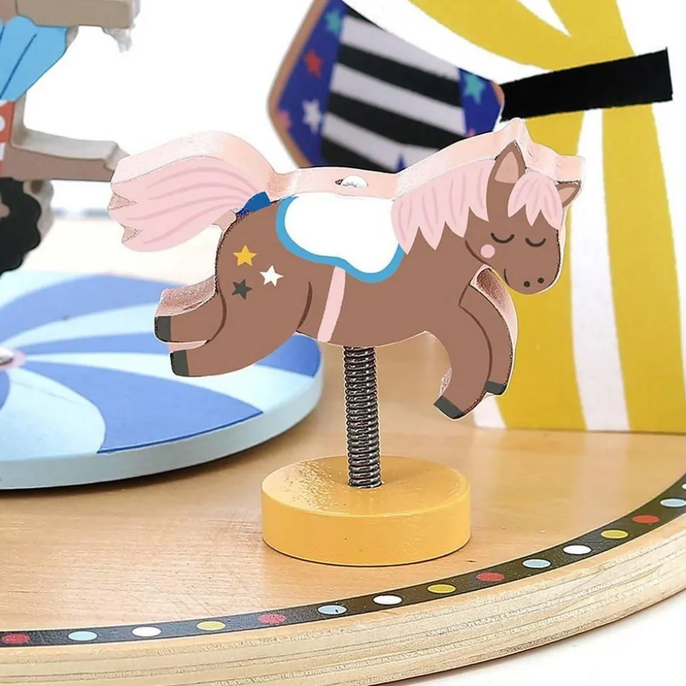 • 6 activités : pop-up, fil métal, lapin pouet-pouet, roulette illusion d’optique, cheval sur ressort, acrobate sur fil.